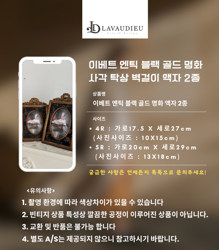 엔틱 탁상액자 블랙 골드 이베트 명화 액자 size 2종 인테리어 소품