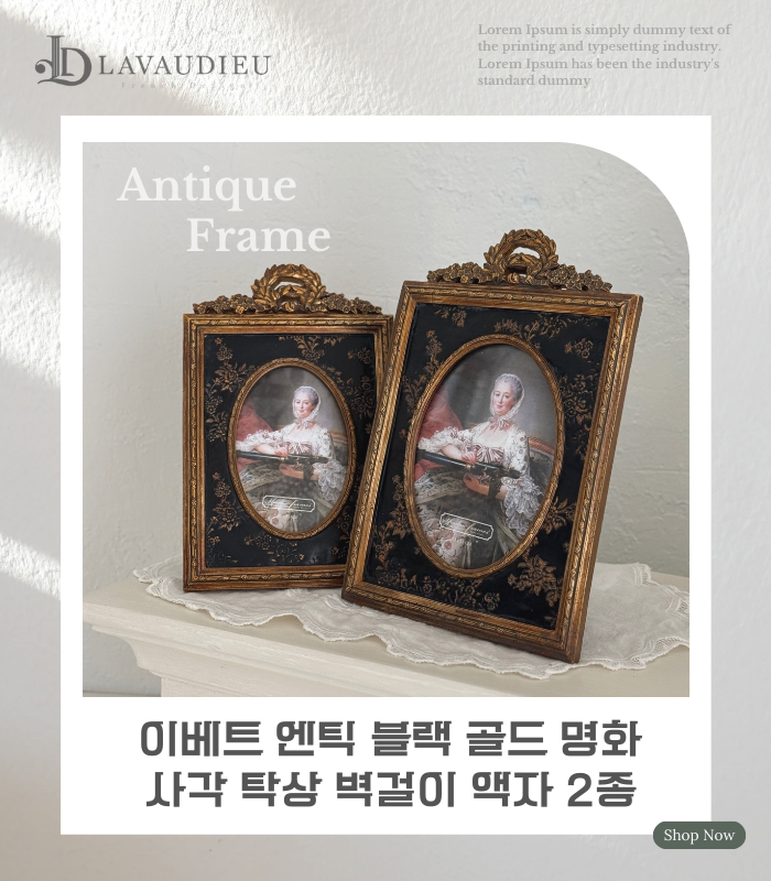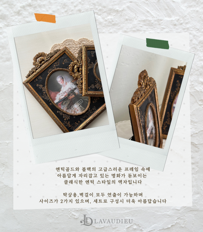 HOME > 액자,거울,시계,엔틱소품 > 거울,액자 > 액자,벽장식 > 엔틱 탁상액자 블랙 골드 이베트 명화 액자 size 2종 인테리어 소품