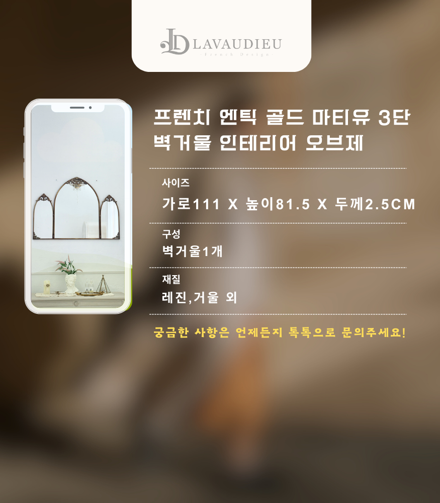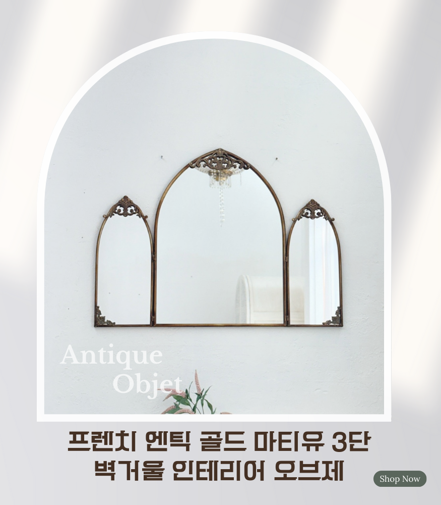 프렌치 엔틱 골드 마티유 3단 벽거울 인테리어 오브제
