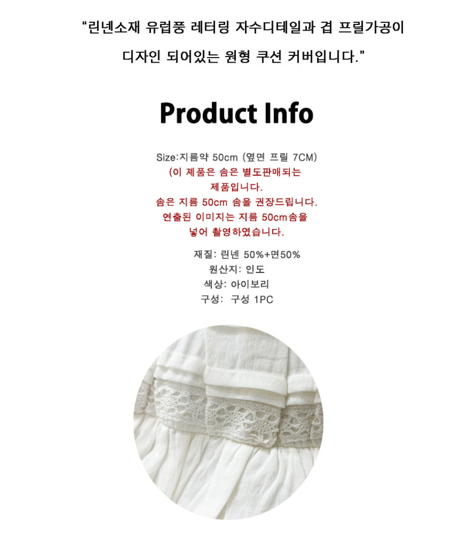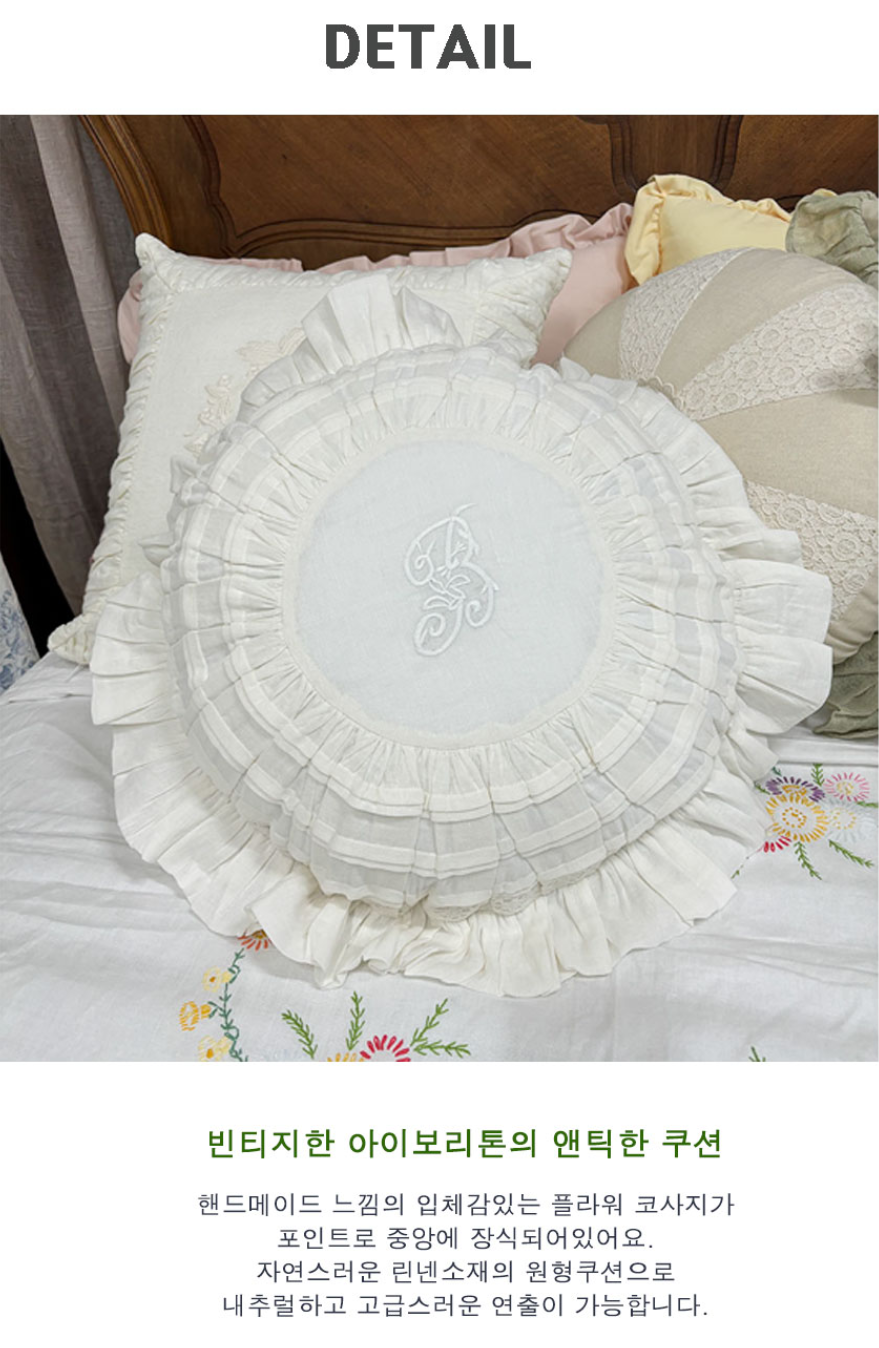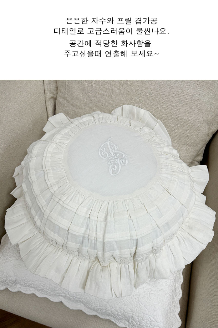 HOME > 침구,쿠션,커버류 > 쿠션 > 사각쿠션 > 프렌치 화이트 프릴 레이스 쿠션커버 자수 원형 프렌치쿠션