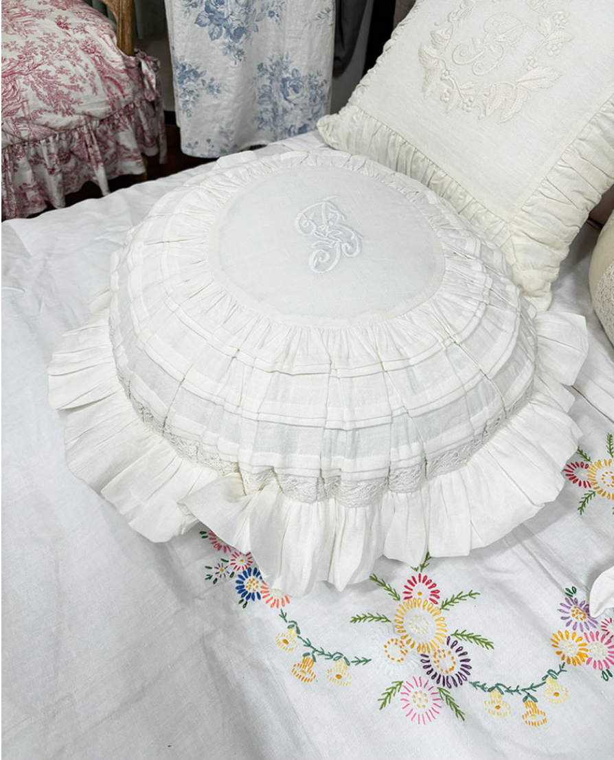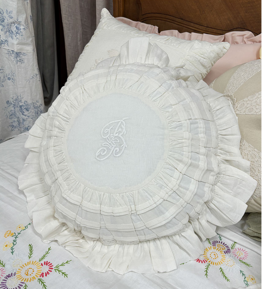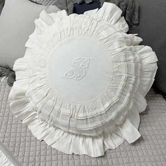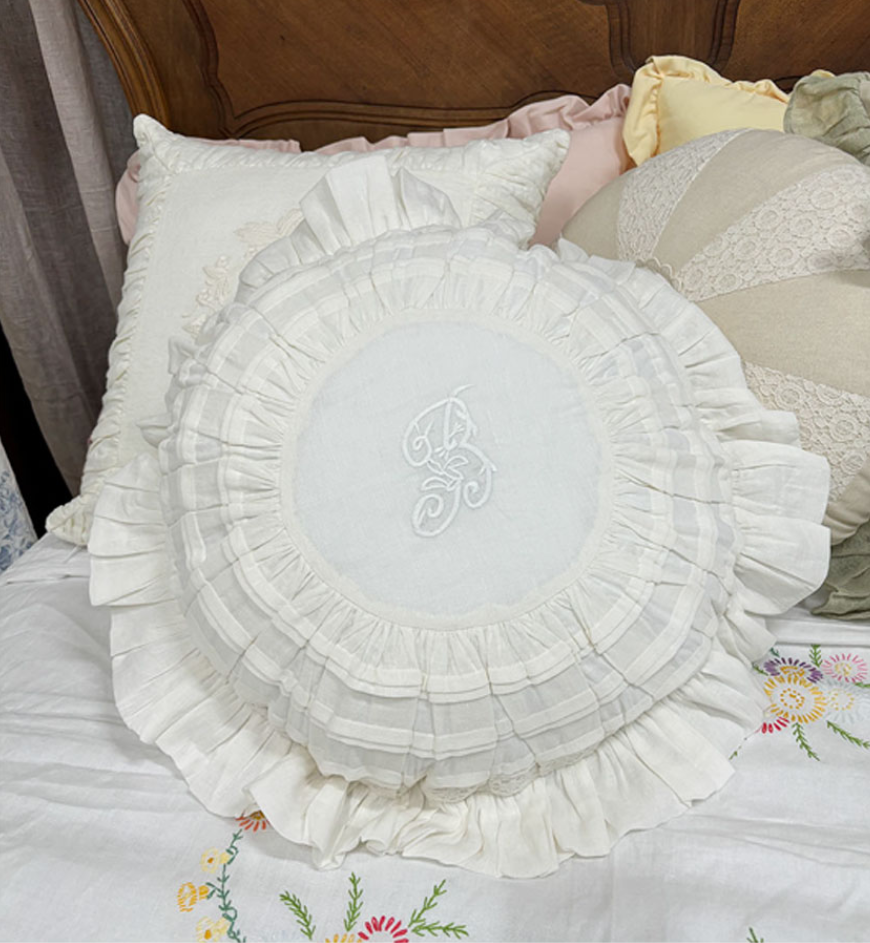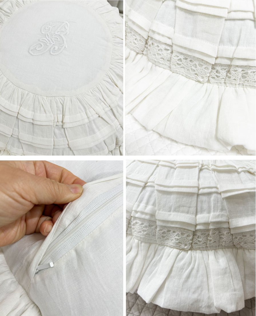 HOME > 침구,쿠션,커버류 > 쿠션 > 사각쿠션 > 프렌치 화이트 프릴 레이스 쿠션커버 자수 원형 프렌치쿠션
