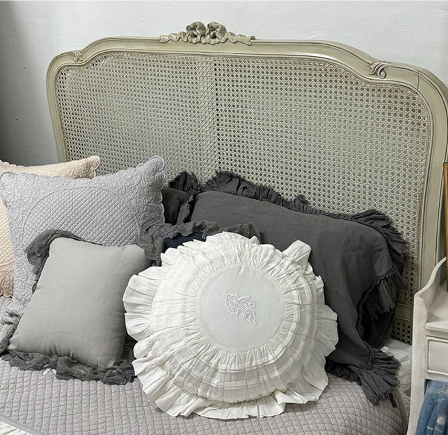 프렌치 화이트 프릴 레이스 쿠션커버 자수 원형 프렌치쿠션