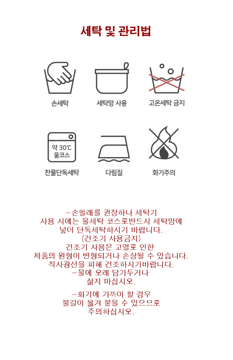세탁방법 및 취급시 주의사항 상품상세참조