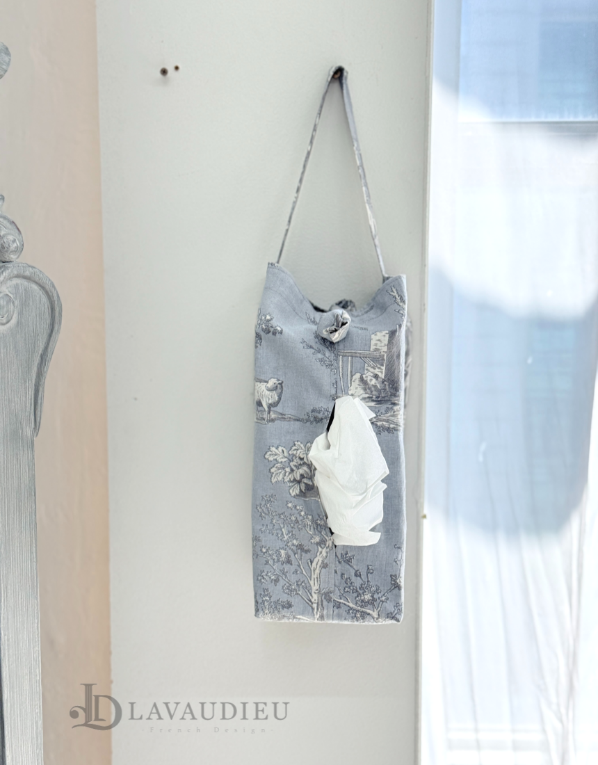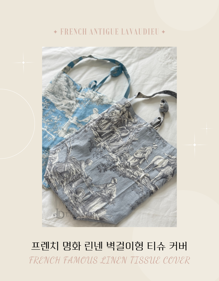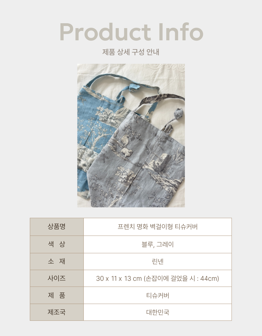프렌치 린넨 플라워 벽걸이형 티슈 커버 2color