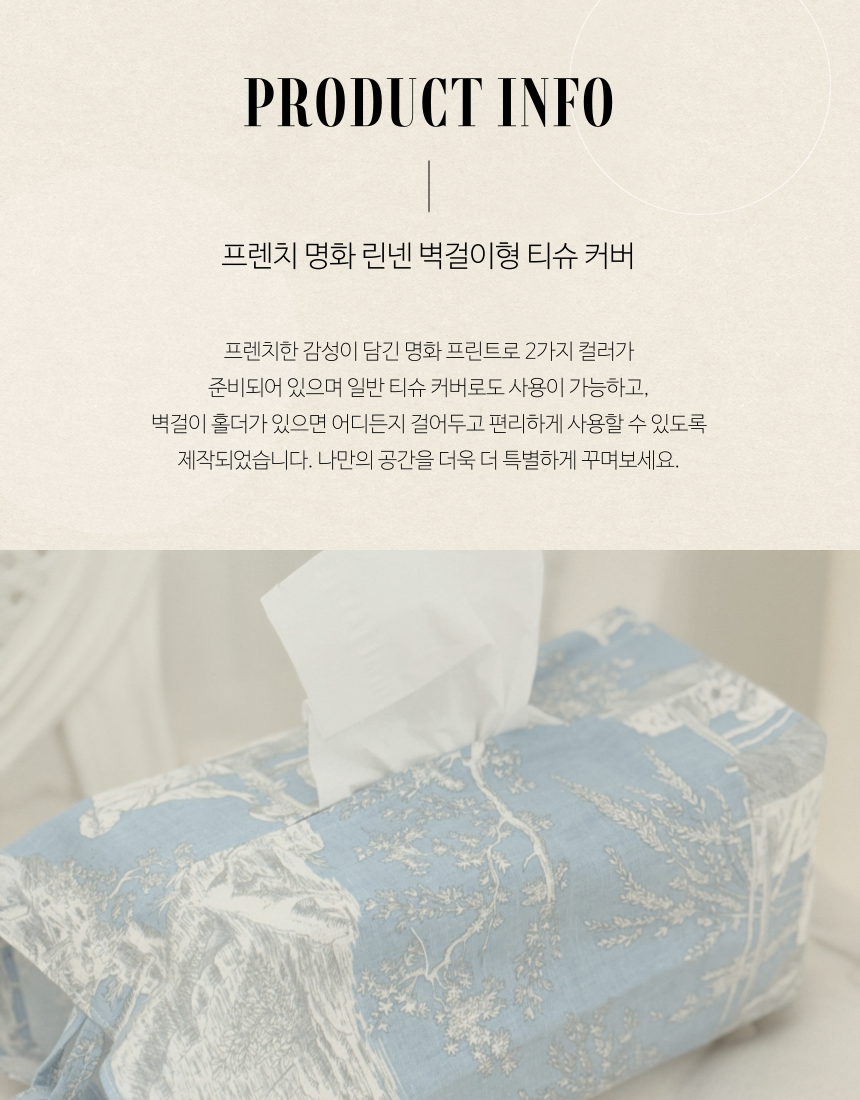 HOME > 침구,쿠션,커버류 > 쿠션 > 사각쿠션 > 프렌치 린넨 플라워 벽걸이형 티슈 커버 2color