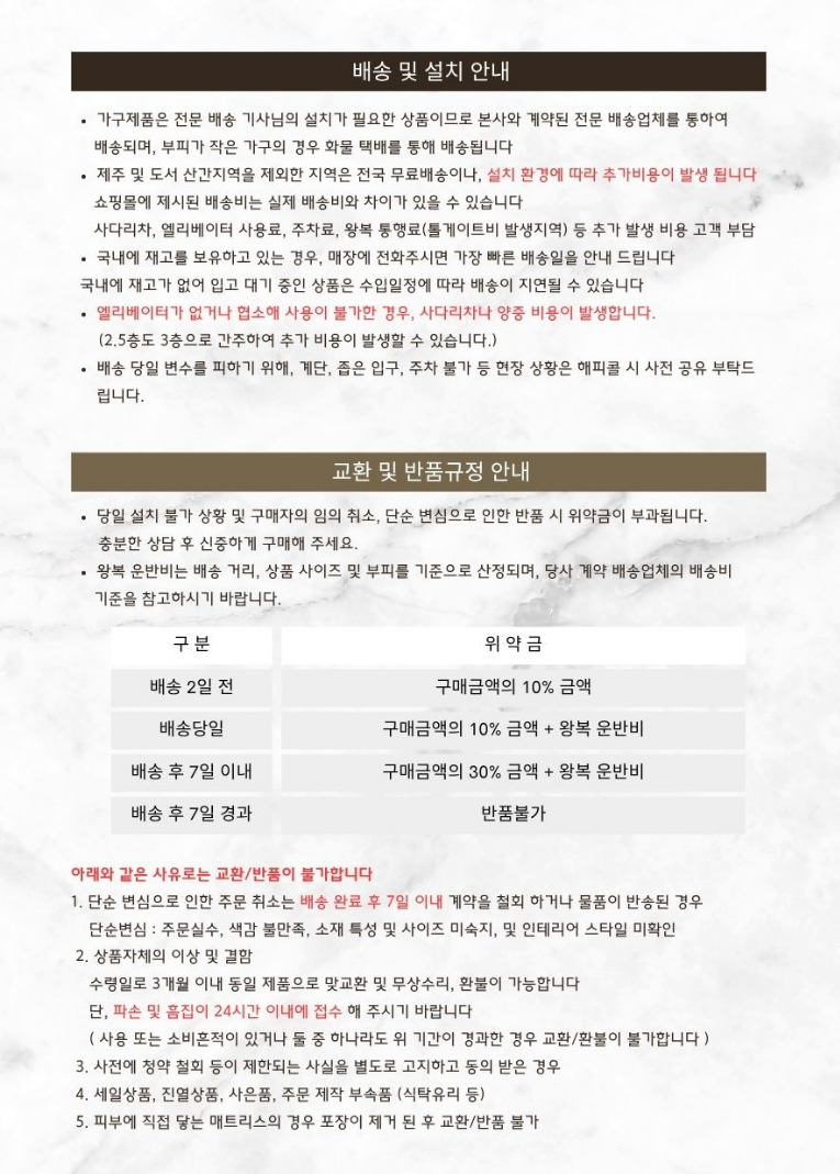 • - 반품 시: 가구 200,000원 / 소품10,000원