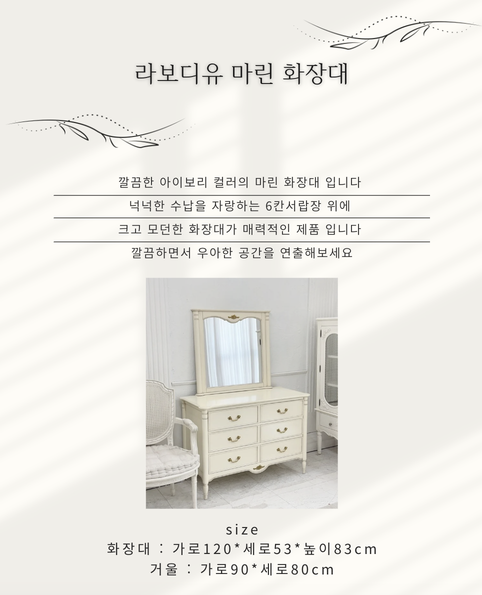 라보디유 프렌치쉐비 마린 와이드 서랍장 화장대 거울 셋트 프렌치가구