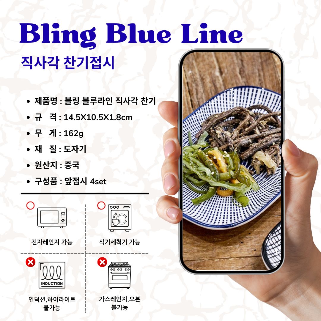 품명 및 모델명 블링 블루라인 직사각 찬기/블링 블루라인 직사각 찬기