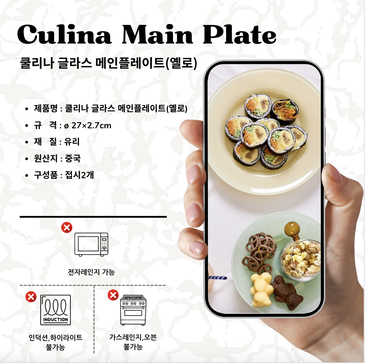 | 품명 및 모델명 | 쿨리나 글라스 메인플레이트(옐로)/쿨리나 글라스 메인플레이트(옐로) |