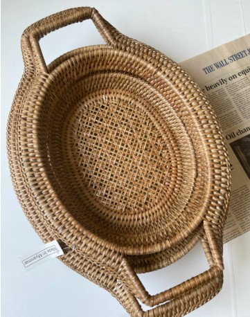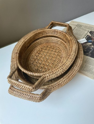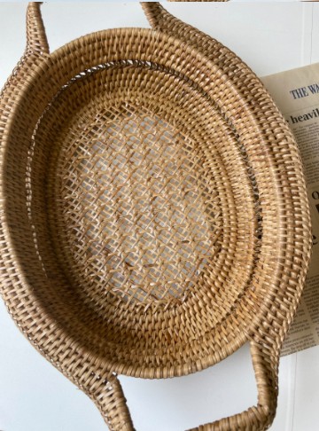 타원 손잡이 트레이 고급 미얀마 라탄 핸드메이드 바구니