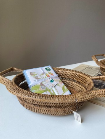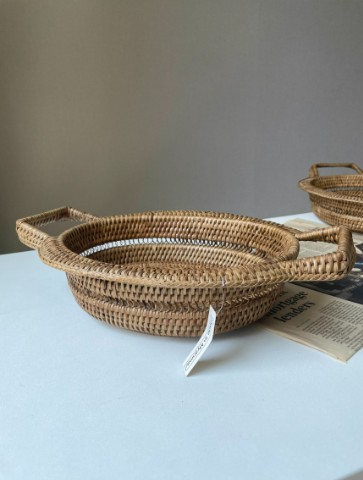 - HOME > 액자,거울,시계,엔틱소품 > 데코장식 > 엔틱 소품/화병 > 타원 손잡이 트레이 고급 미얀마 라탄 핸드메이드 바구니