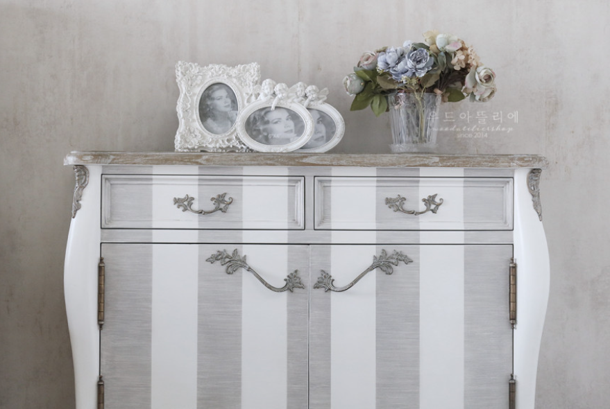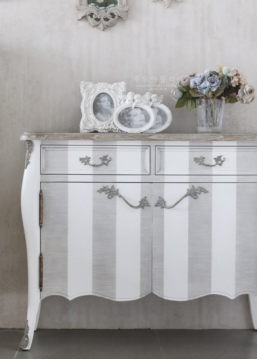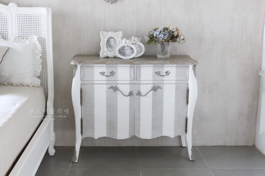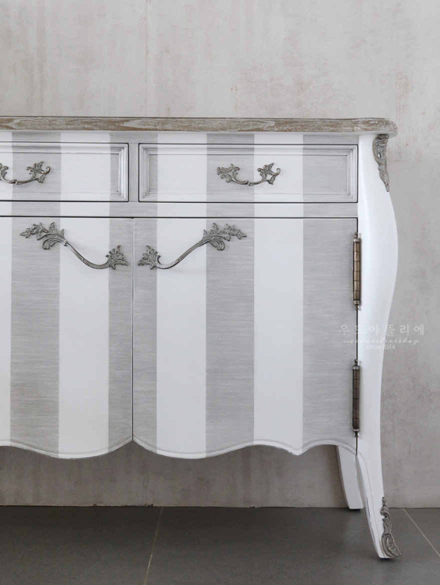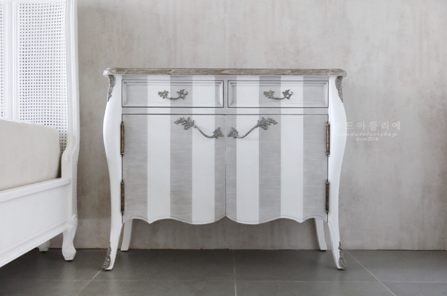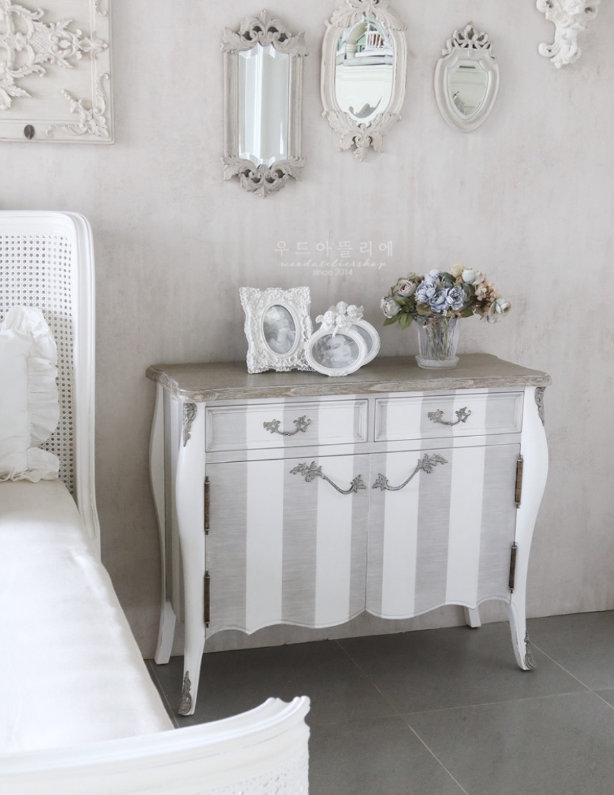 프렌치가구 벨라 미니 체스트 그레이스트라이프 모던 프렌치 콘솔 수납장 쉐비가구