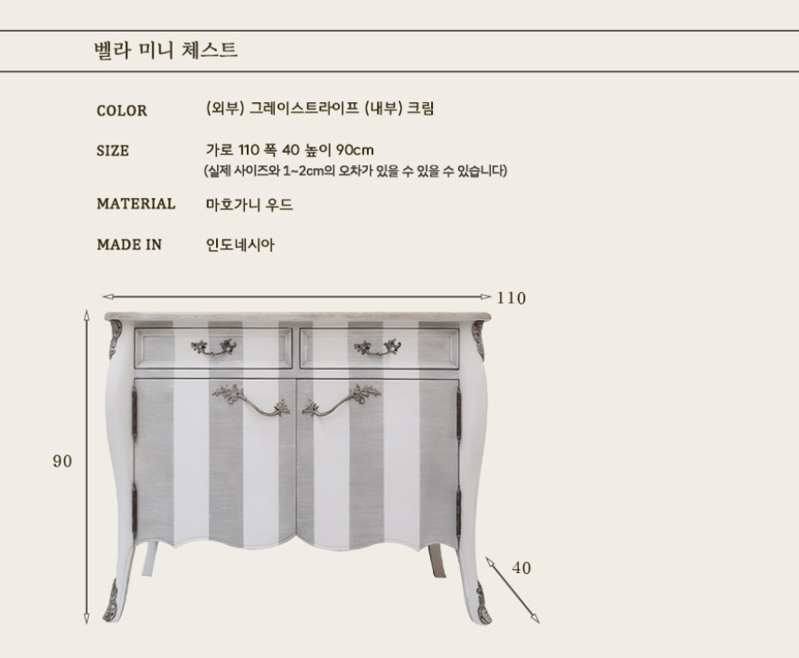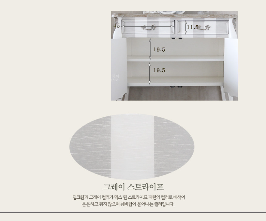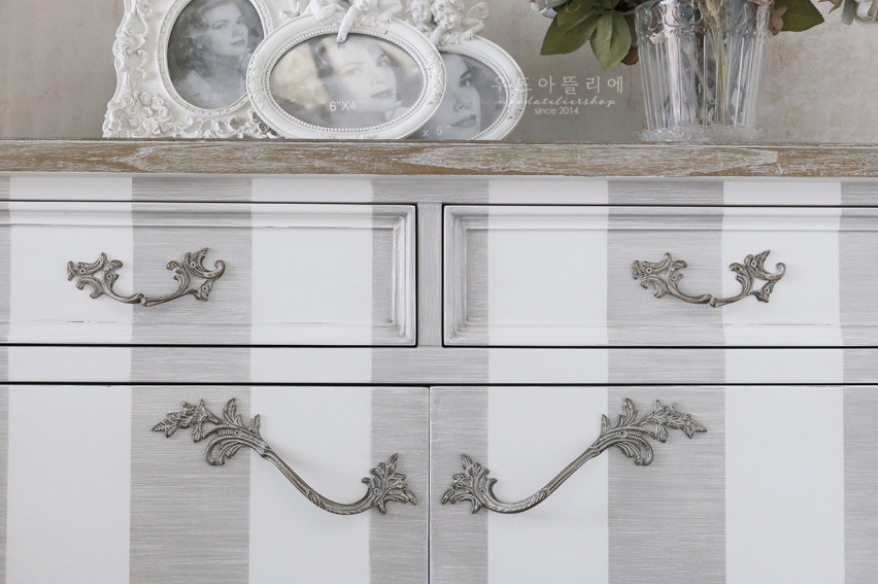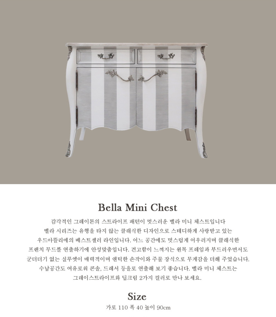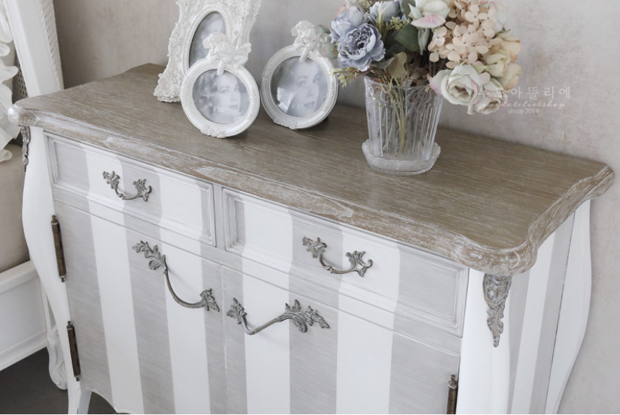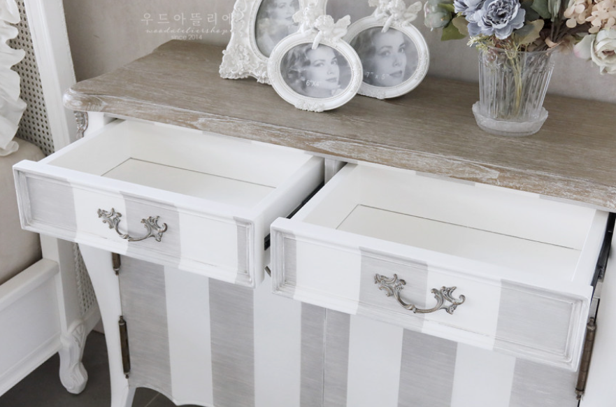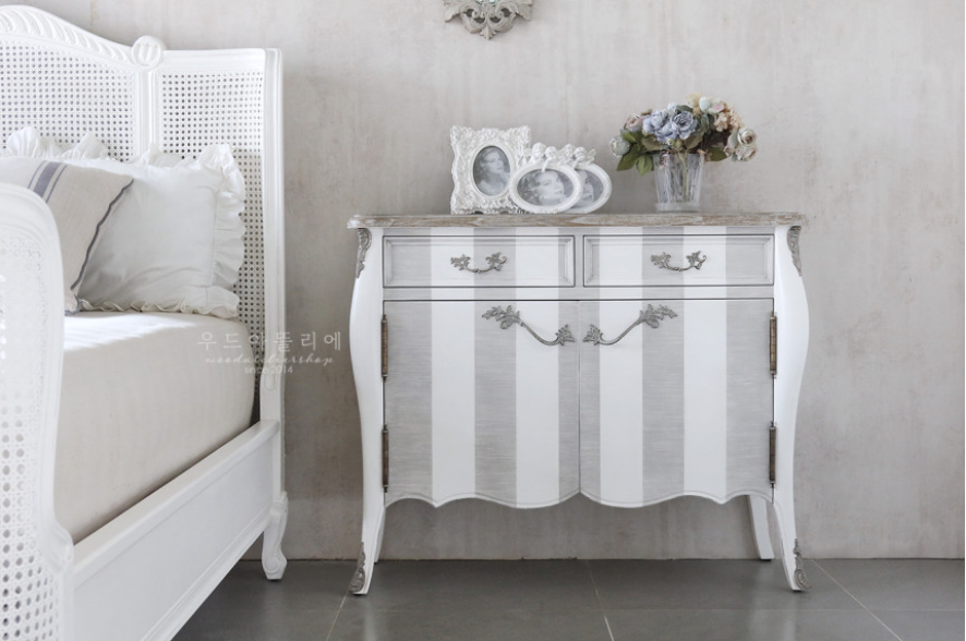 프렌치가구 벨라 미니 체스트 그레이스트라이프 모던 프렌치 콘솔 수납장 쉐비가구