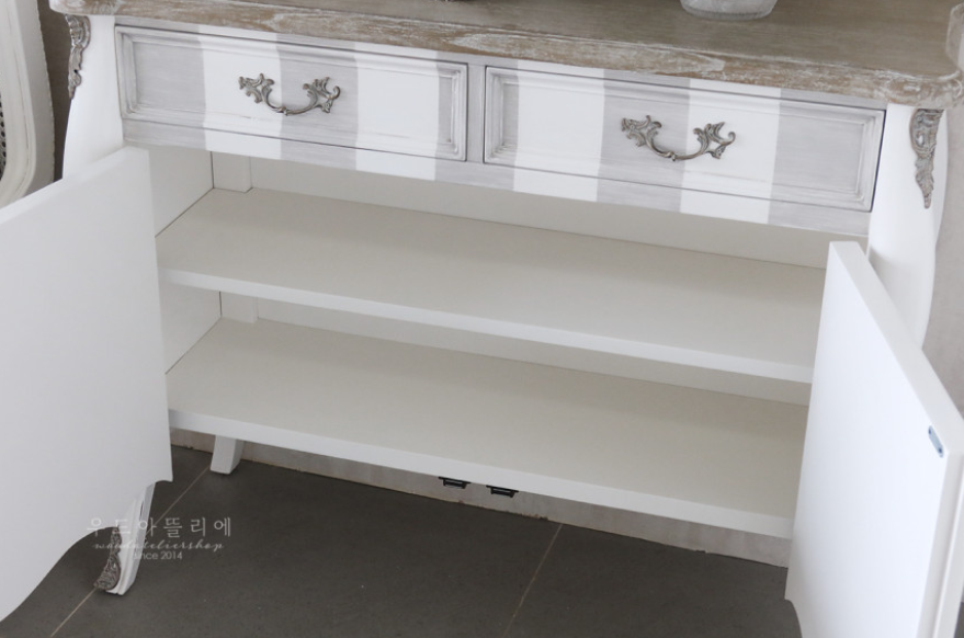 • - 디테일 부분은 핸드메이드 방식으로 제작되기 때문에, 제품마다 균일하지 않을 수 있습니다. 빈티지 작업 즉 스크래치 공법으로 도장 마감 전 스크래치를 내주는 공법이 사용됩니다. 핀홀공법(마감 전 못이박힌 브러쉬같은 도구로 찍어주는공법)과 더스트공법(옛스럽게 보이려 세월의 먼지가 쌓인것처럼 연출하는 공법)을 사용합니다.