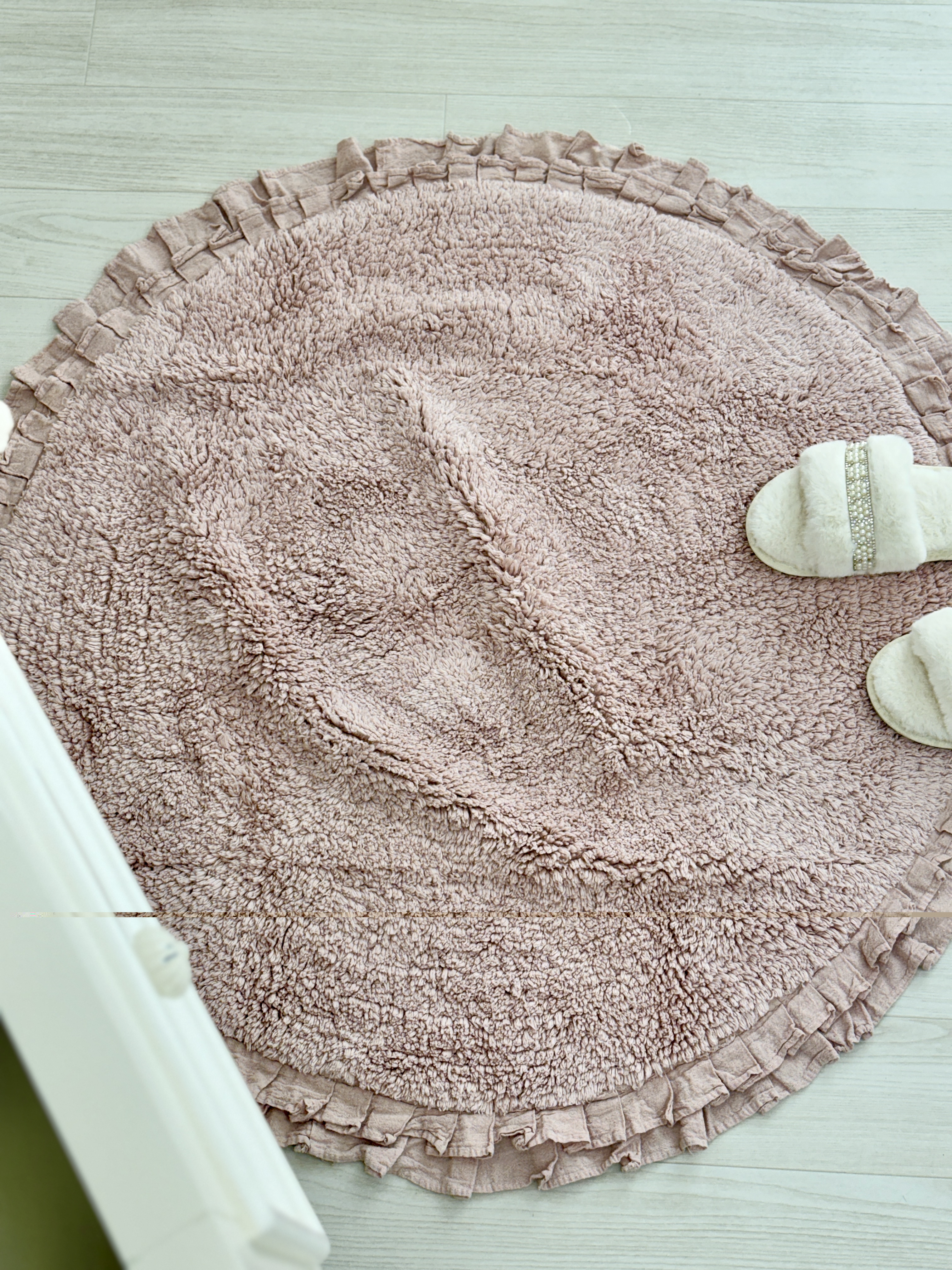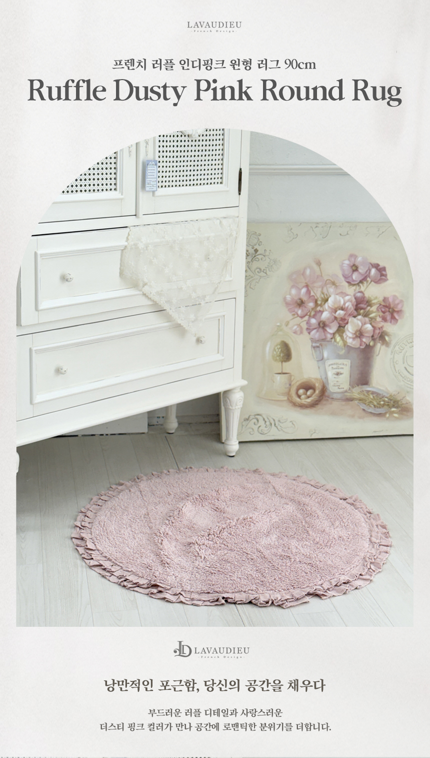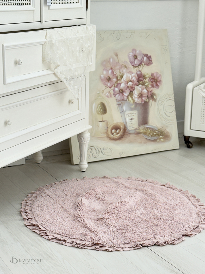 - HOME > 침구,쿠션,커버류 > 블랭킷,스프레드,패드 > 프렌치 러플 인디핑크 원형 러그 대형매트 빈티지매트 우아한러그 클래식홈데코