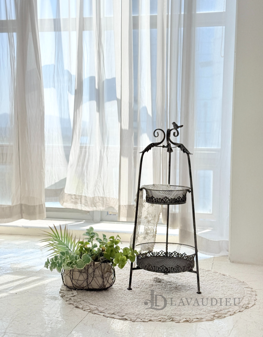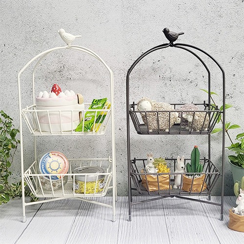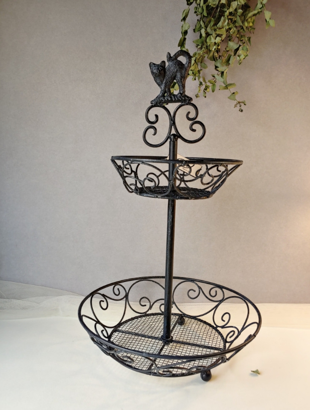 고양이 빈티지 철제 원형 다용도 2단 미니 바스켓 세트 테이블 디저트 쿠키 과일 바구니 식탁 정리 수납