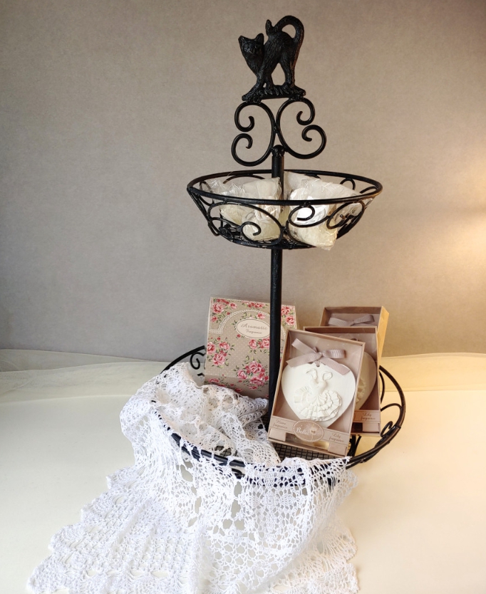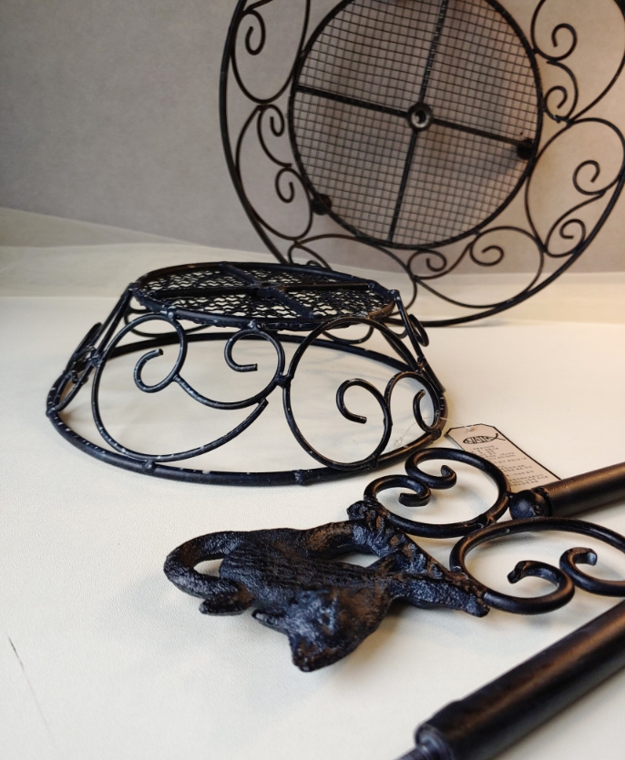 HOME > 액자,거울,시계,엔틱소품 > 소품걸이,기타장식 > 소품걸이,정리함 > 고양이 빈티지 철제 원형 다용도 2단 미니 바스켓 세트 테이블 디저트 쿠키 과일 바구니 식탁 정리 수납
