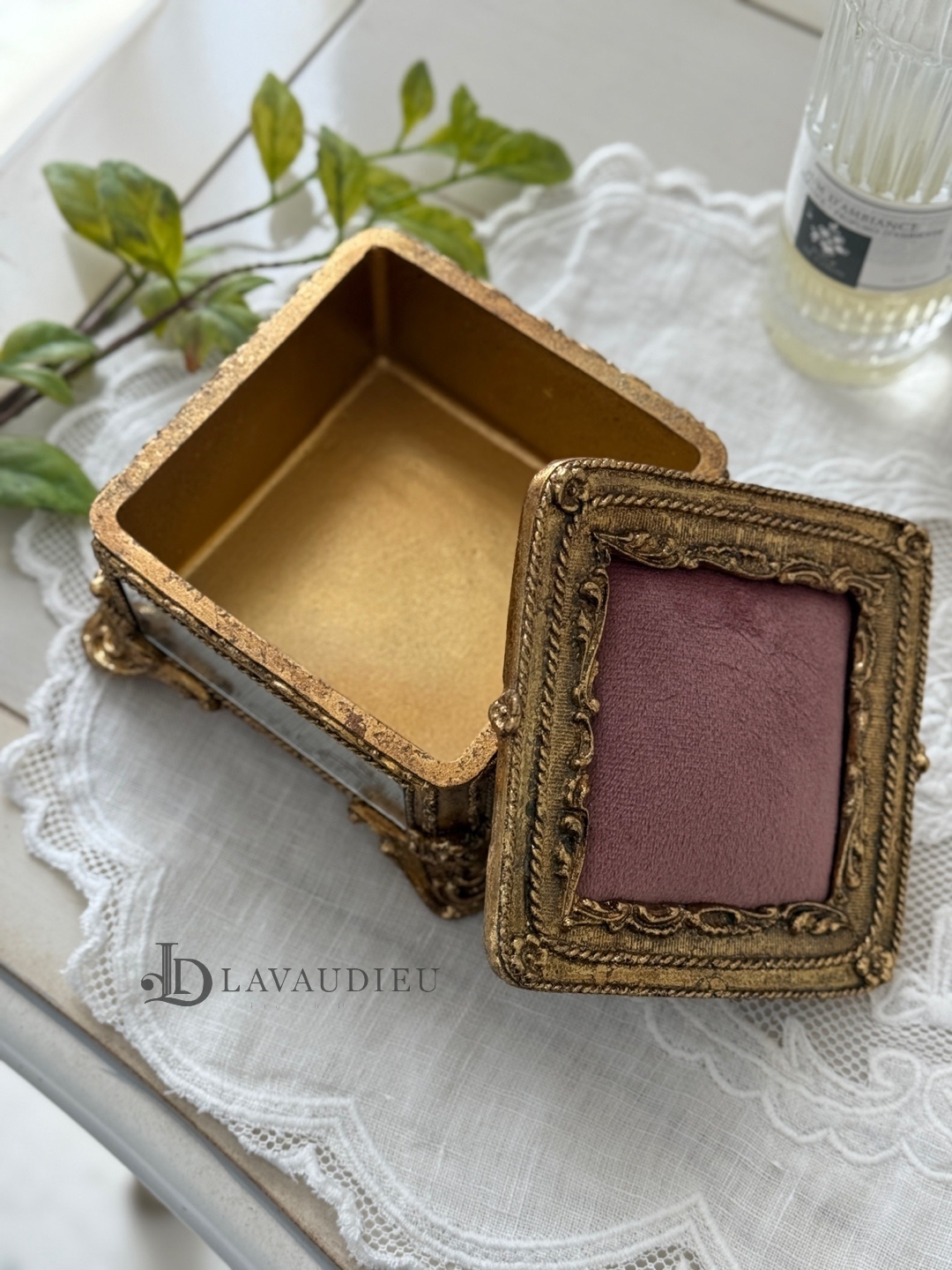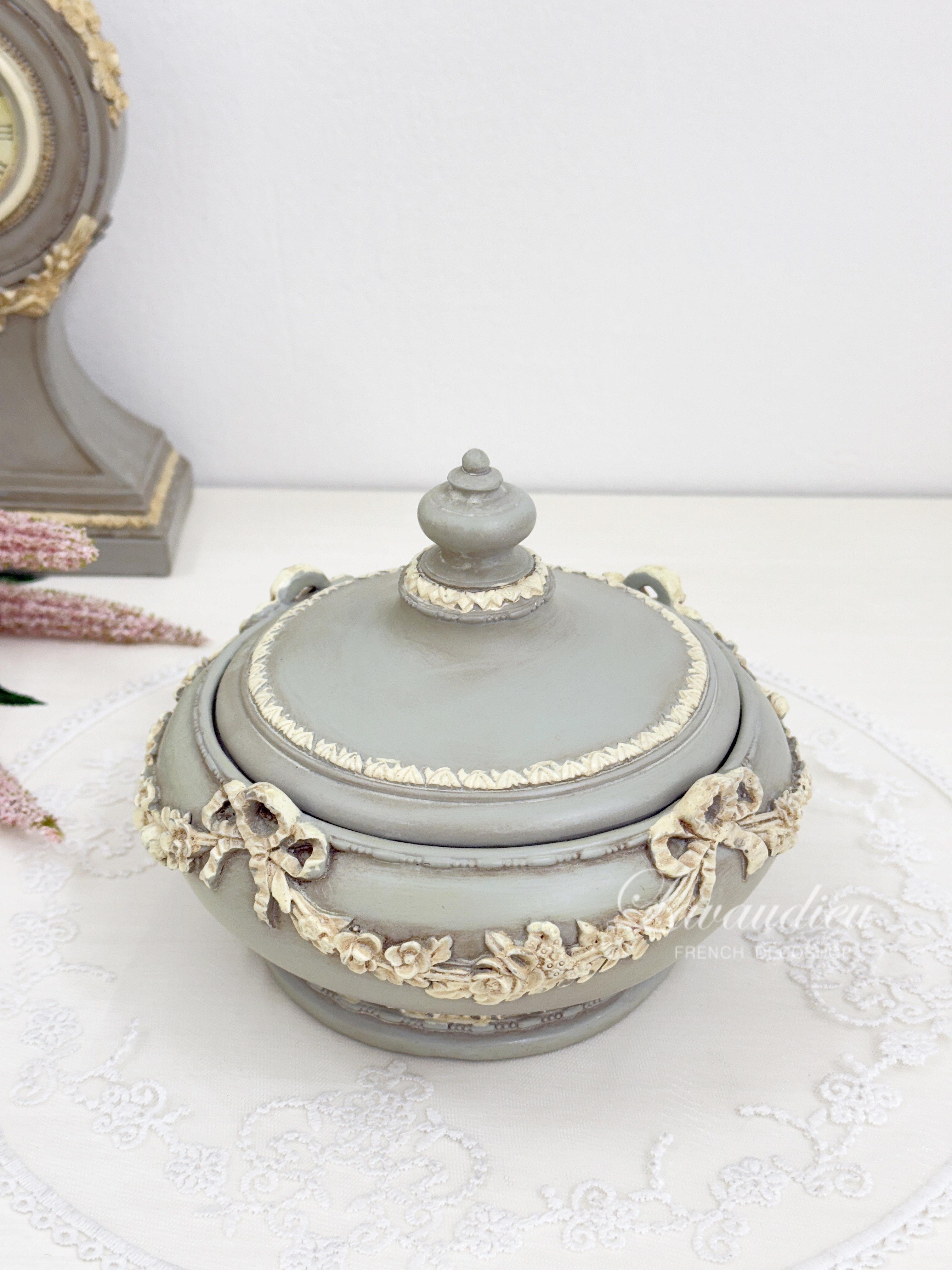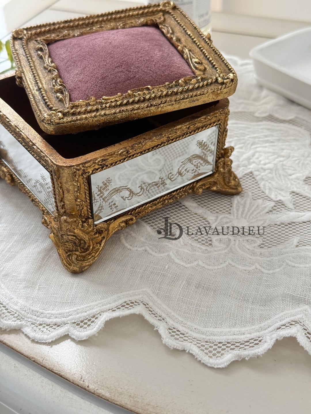 품명 빈티지 엔틱 모스 원형 보석함 보관함 프렌치인테리어 소품
