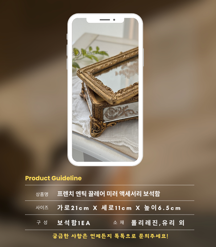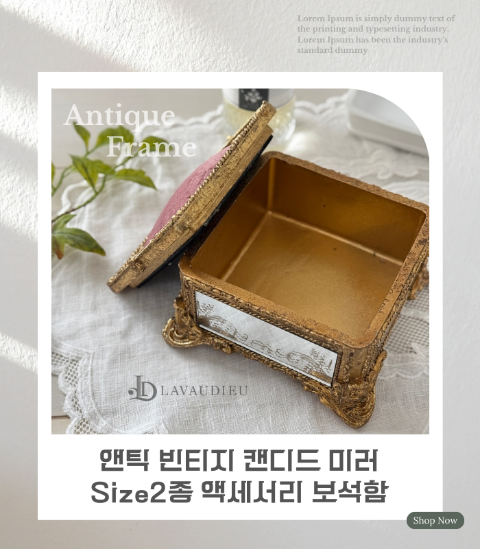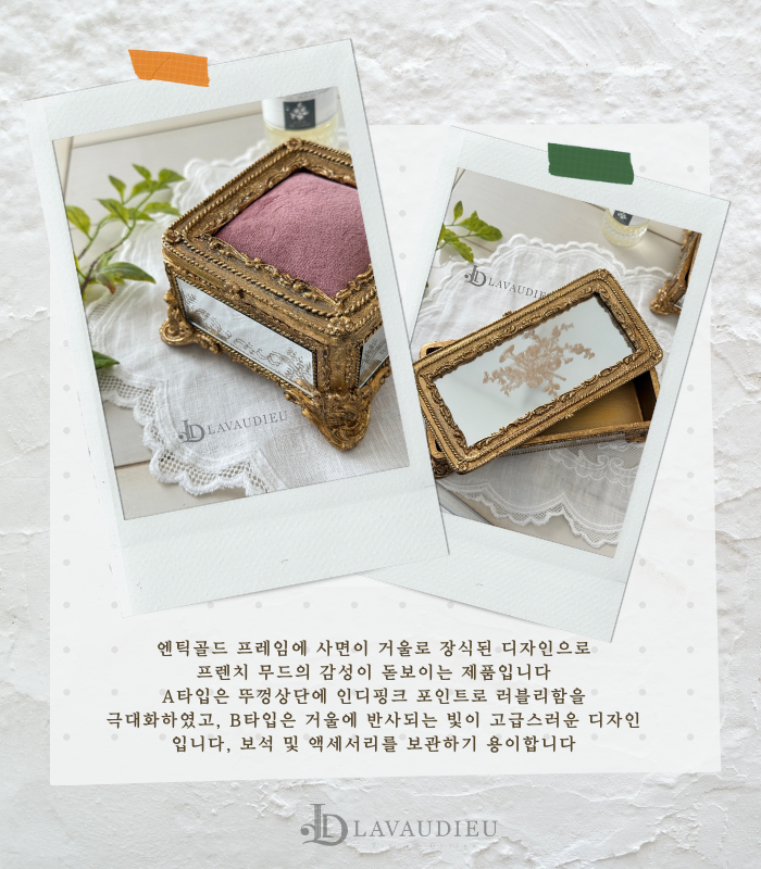 앤틱 빈티지 캔디드 미러 Size2종 액세서리 보관 화장대 정리함 케이스 인테리어