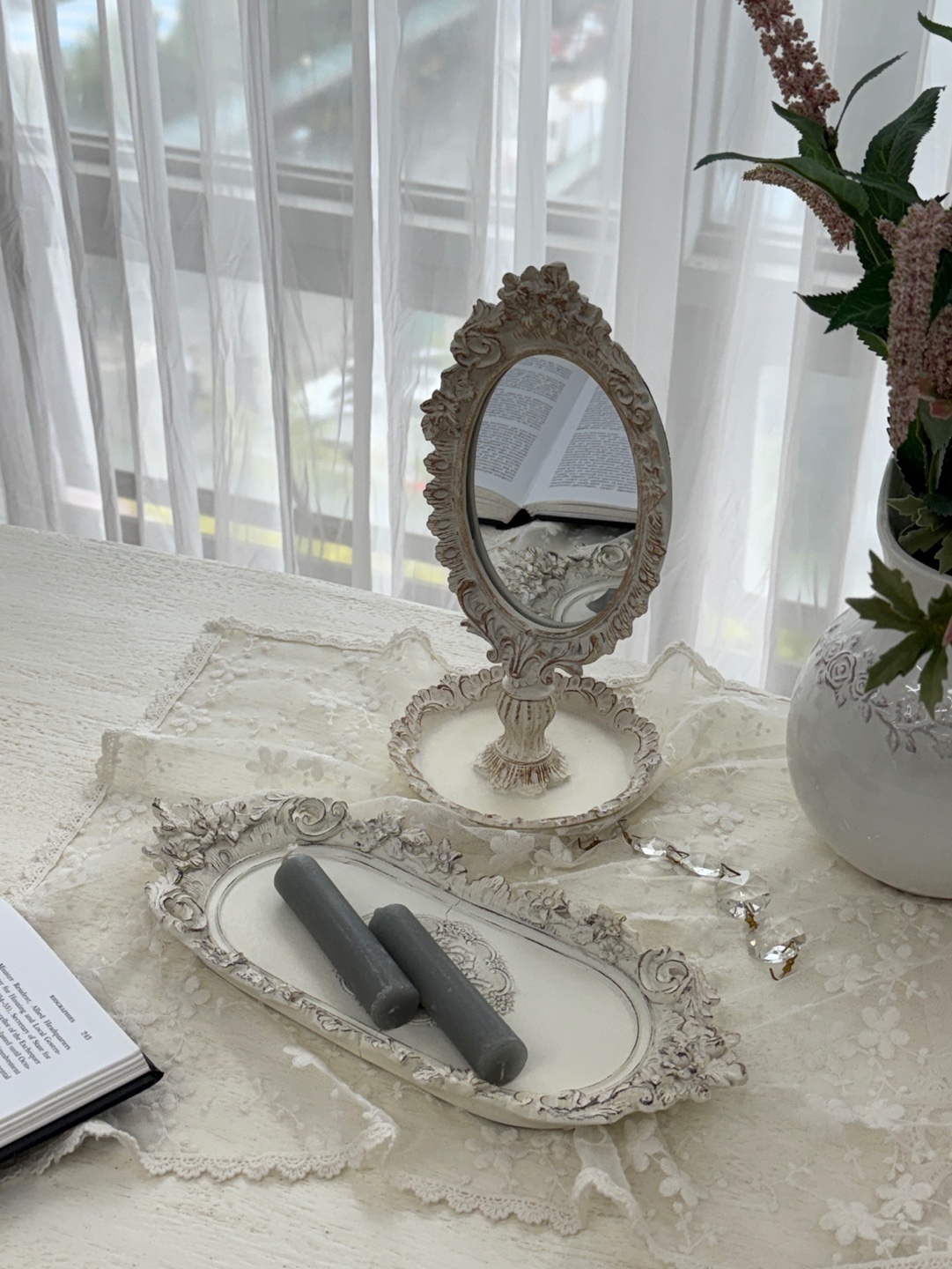 - HOME > 액자,거울,시계,엔틱소품 > 데코장식 > 엔틱 소품/화병 > 플뢰르 앙카드리 트레이 프렌치 화이트 미러 트레이 세트 인테리어 소품