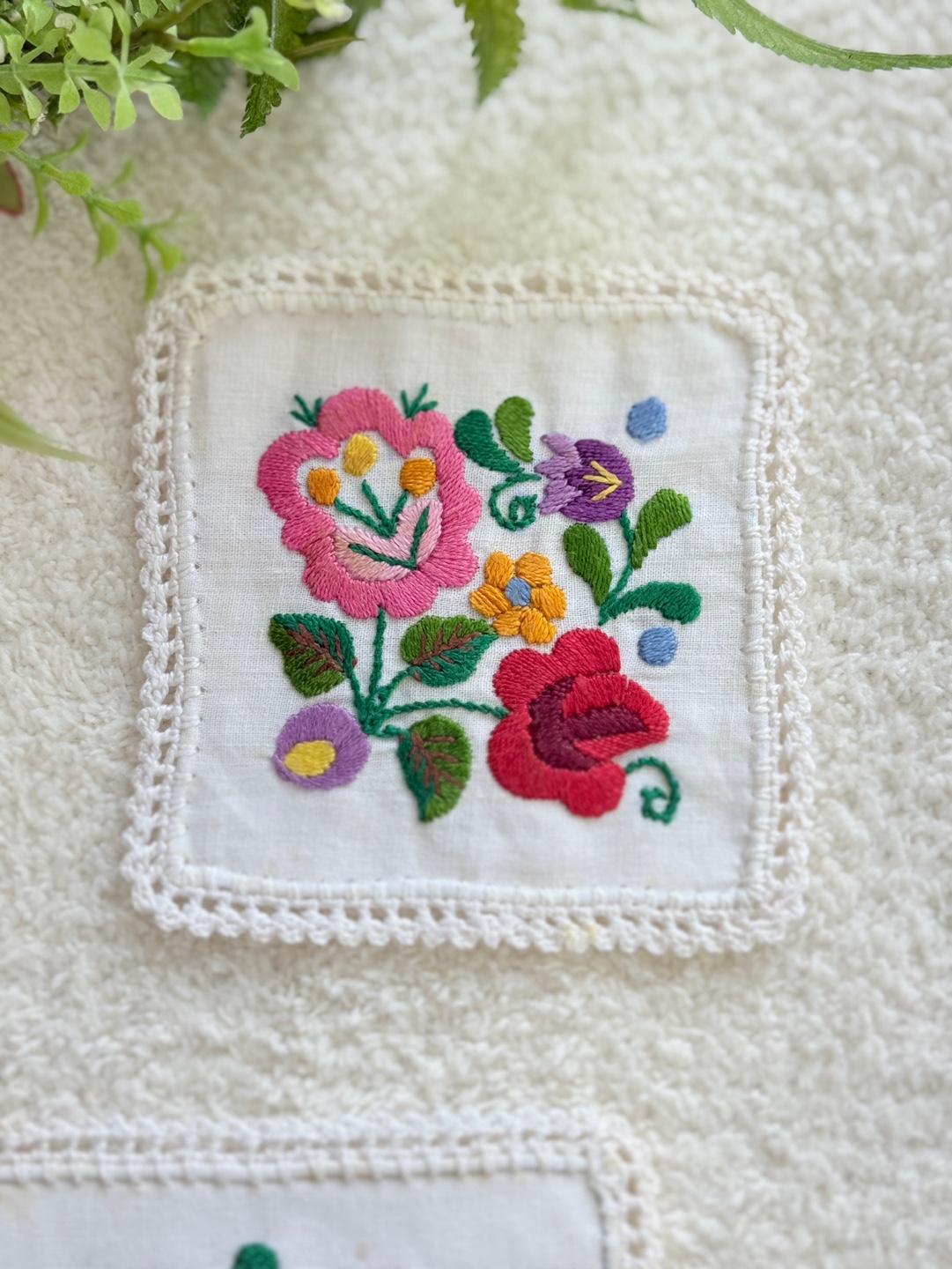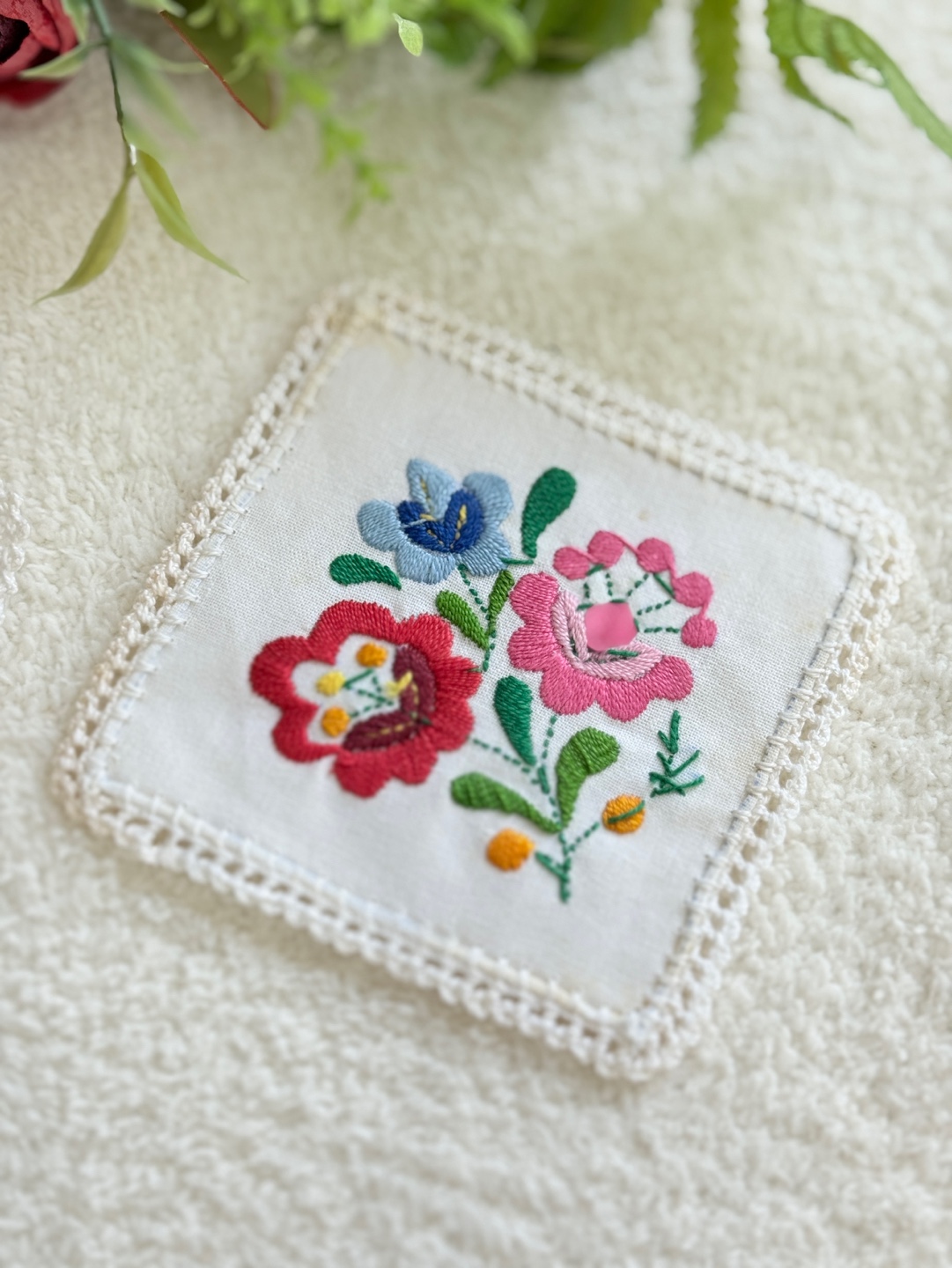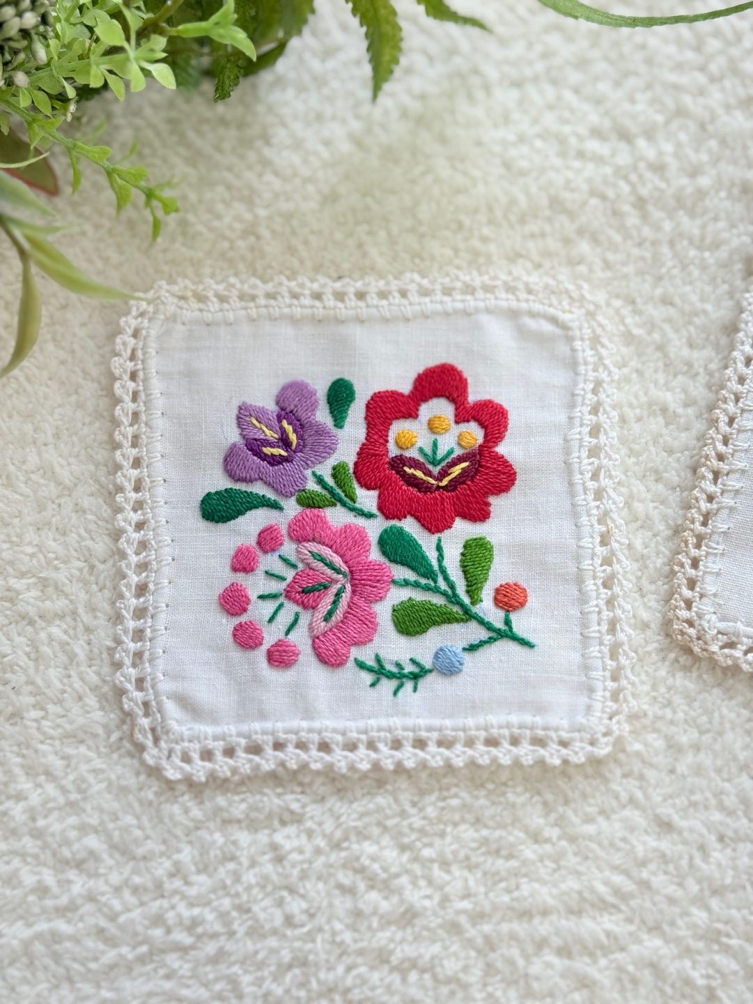 화려하고 섬세한 꽃 자수가 돋보이는 핸드메이드 감성의 코스터 세트입니다.