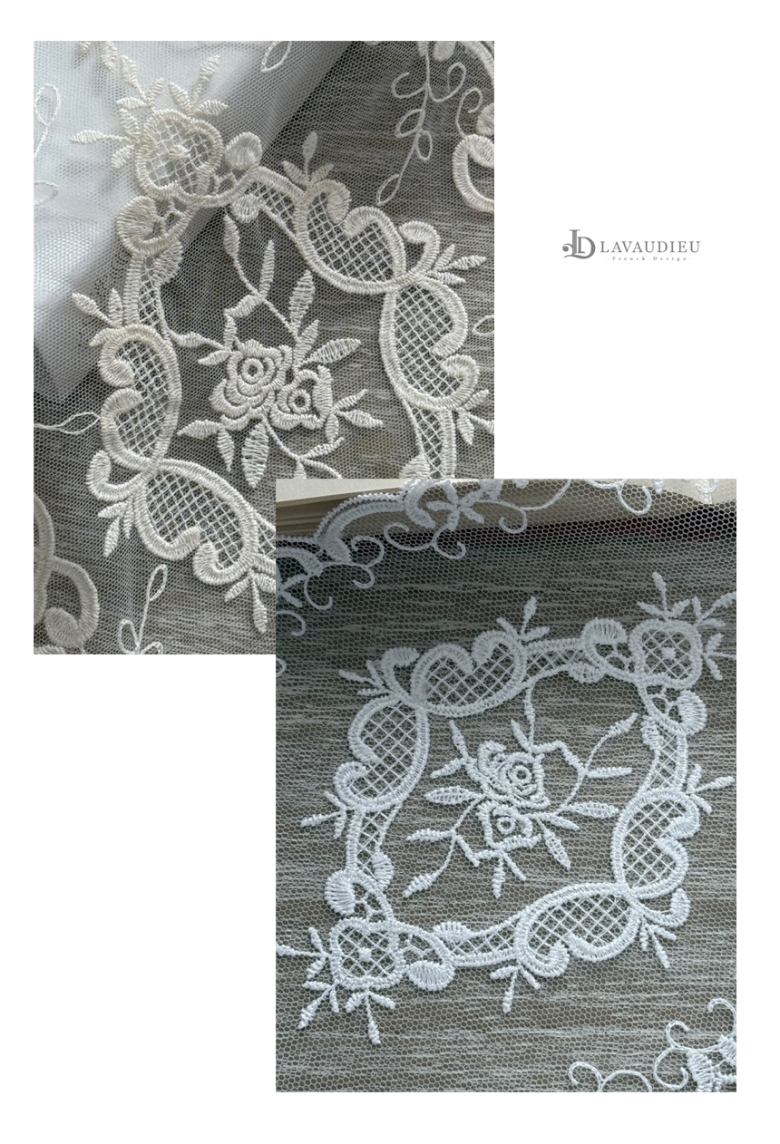 섬세한 프렌치 자수와 레이스 디테일로