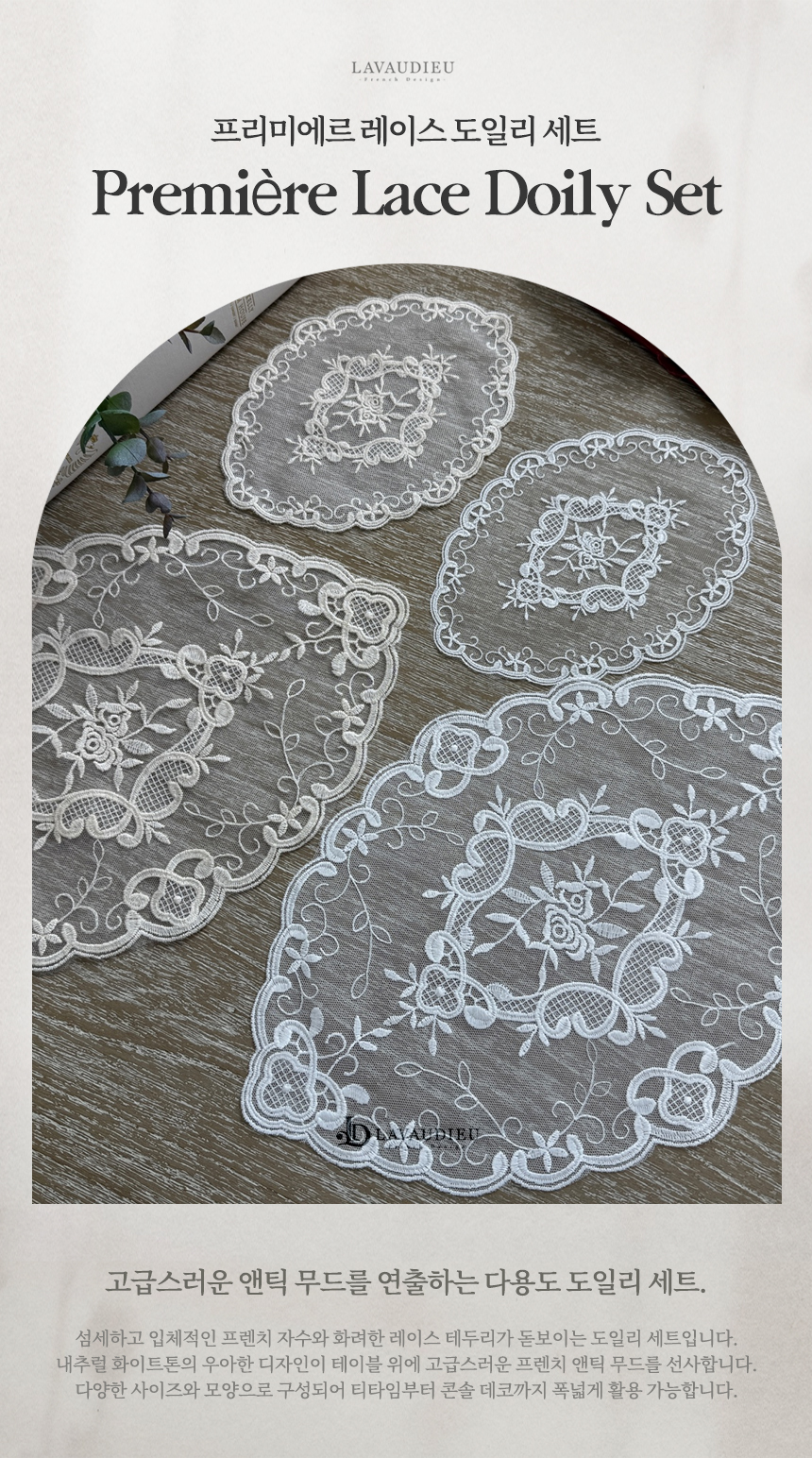 고급스러운 앤틱 무드를 연출하는 다용도 도일리 세트.