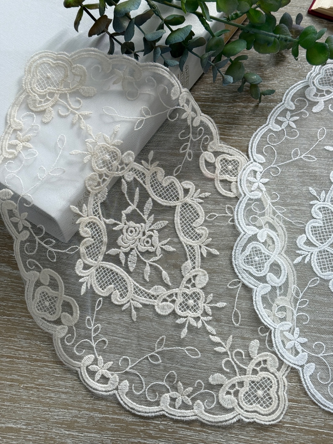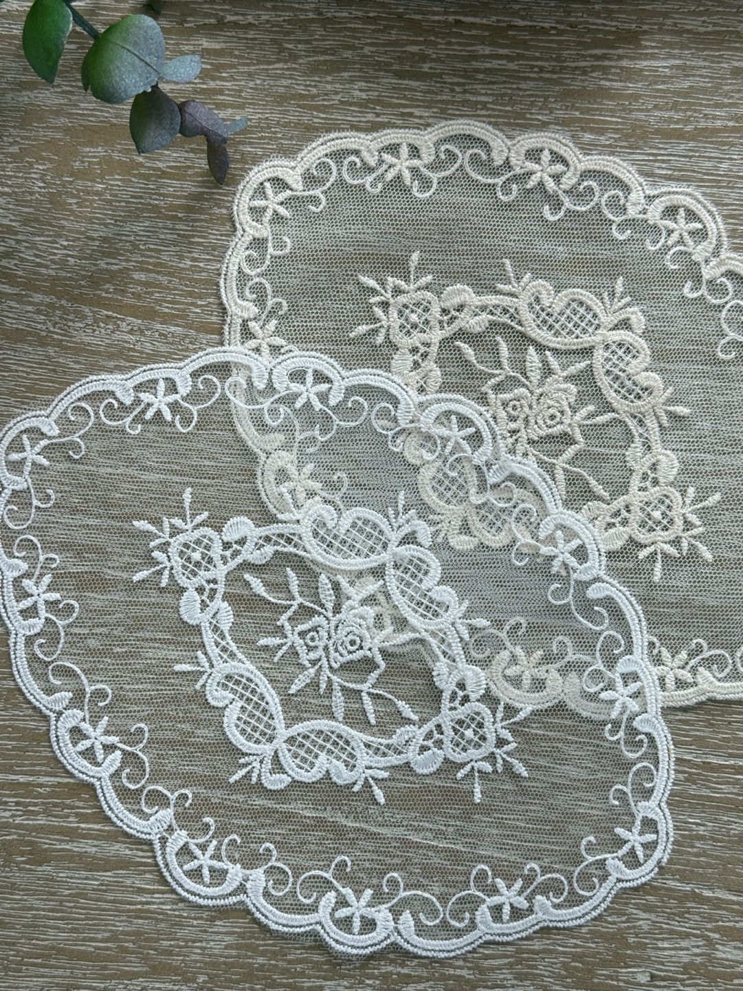 섬세하고 입체적인 프렌치 자수화려한 레이스 테두리가 돋보이는 도일리 세트입니다.