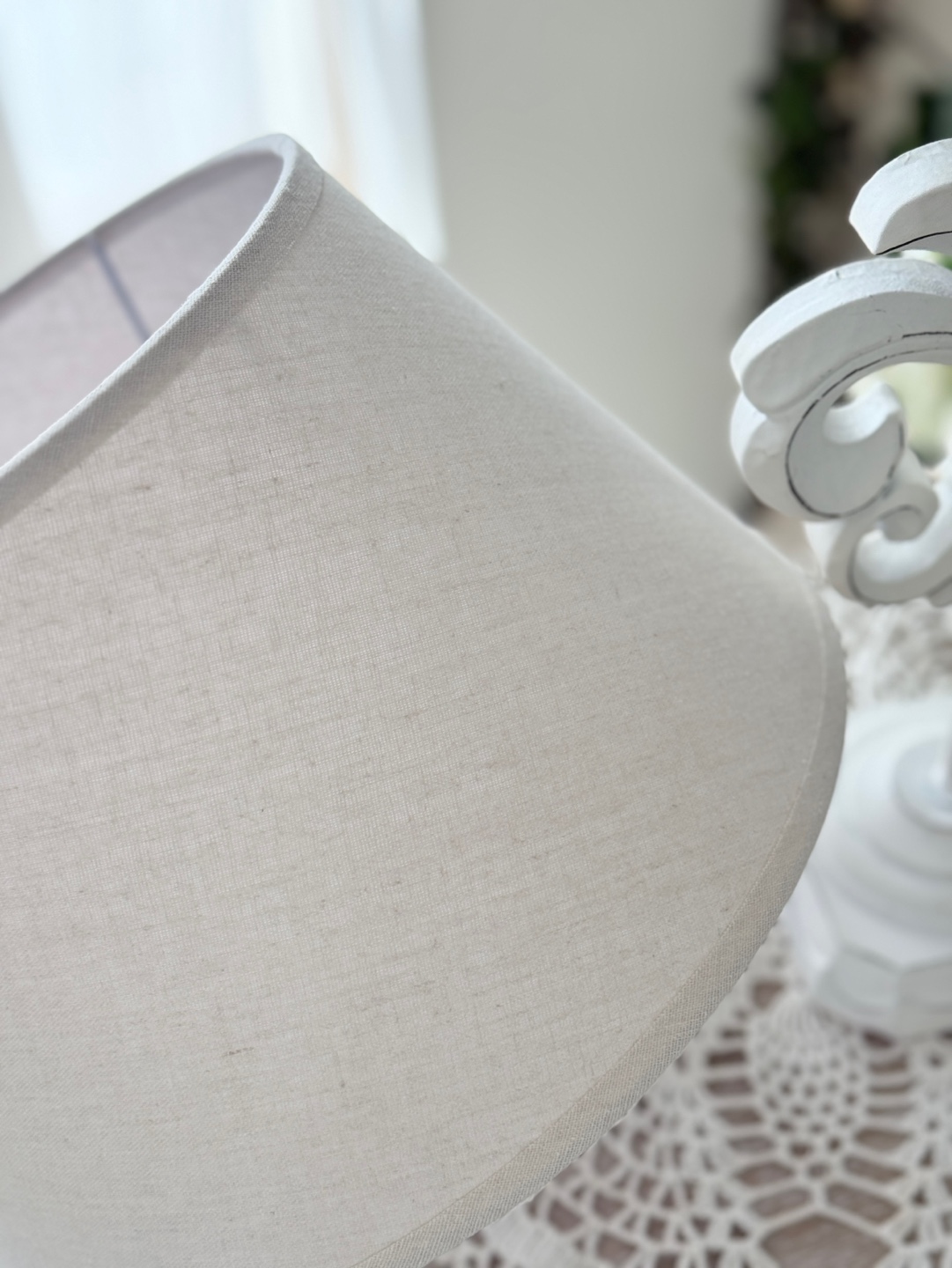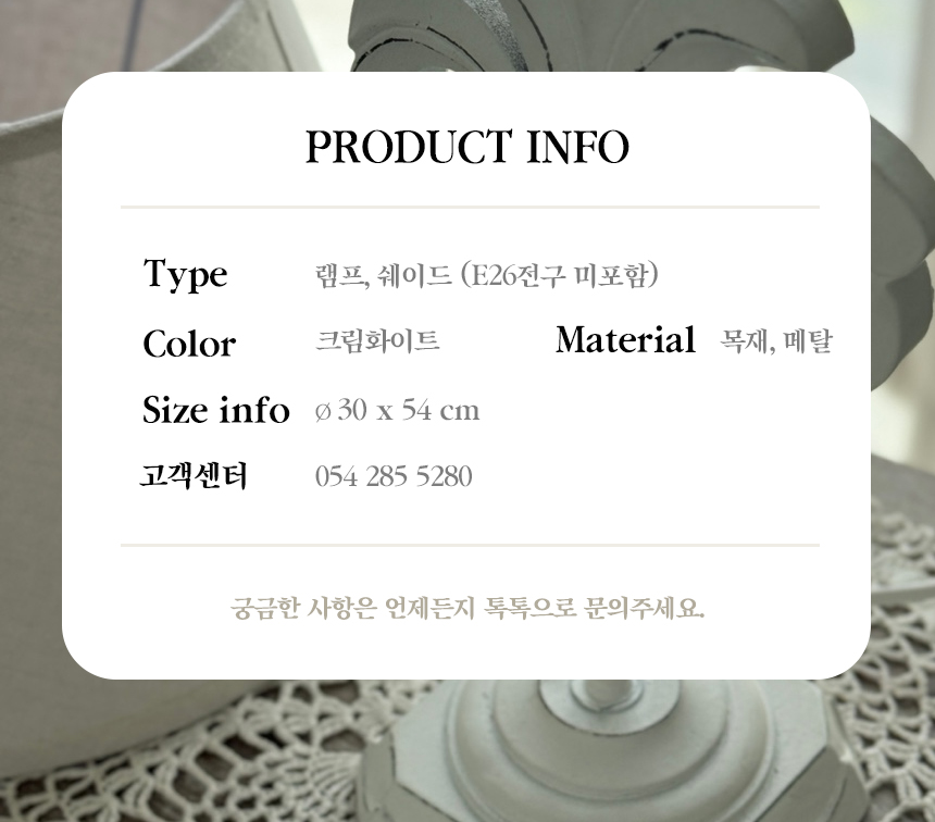 아이보리 톤의 텍스처 갓으로 빛을 부드럽게 분산하여 아늑함 극대화