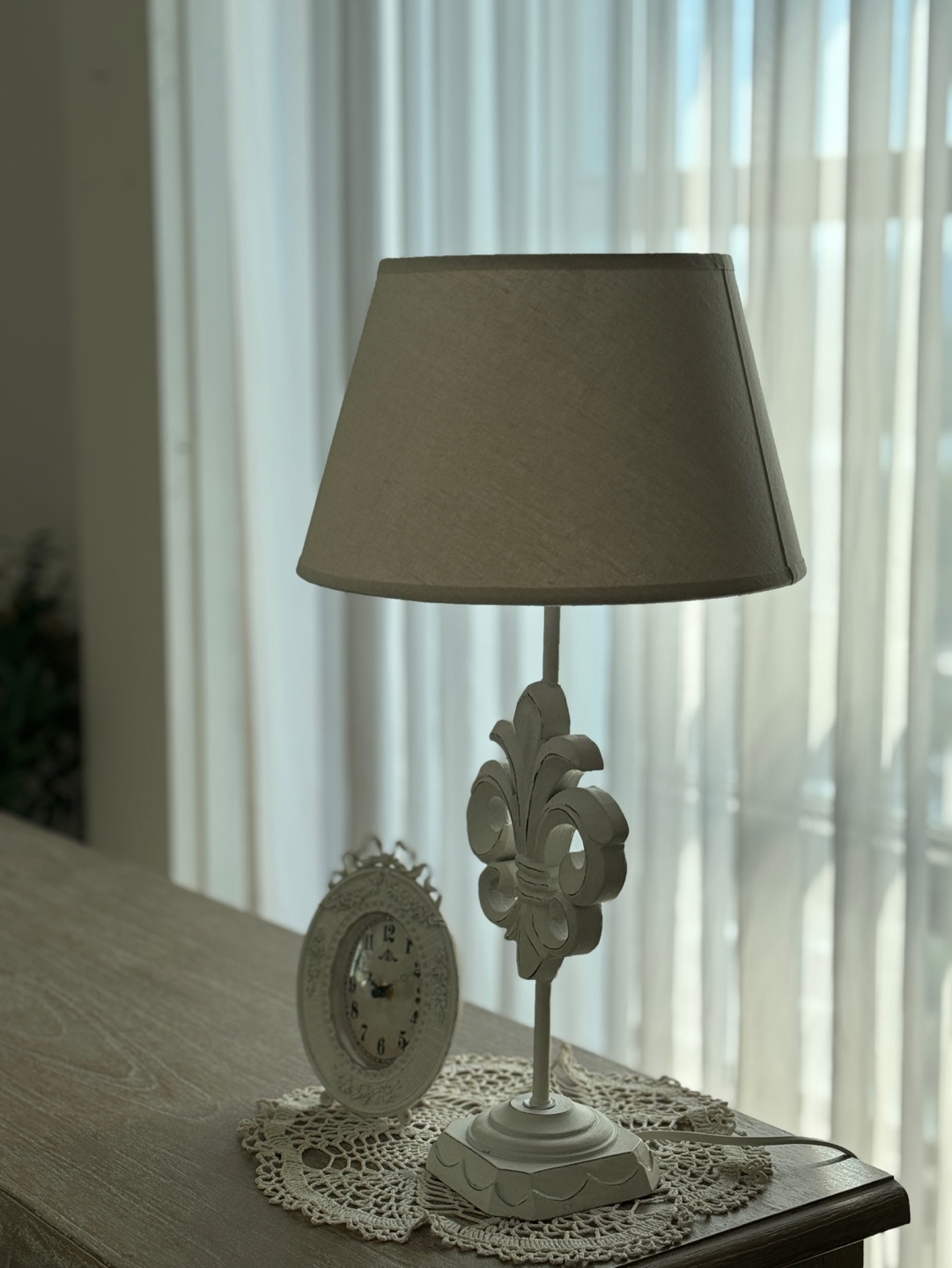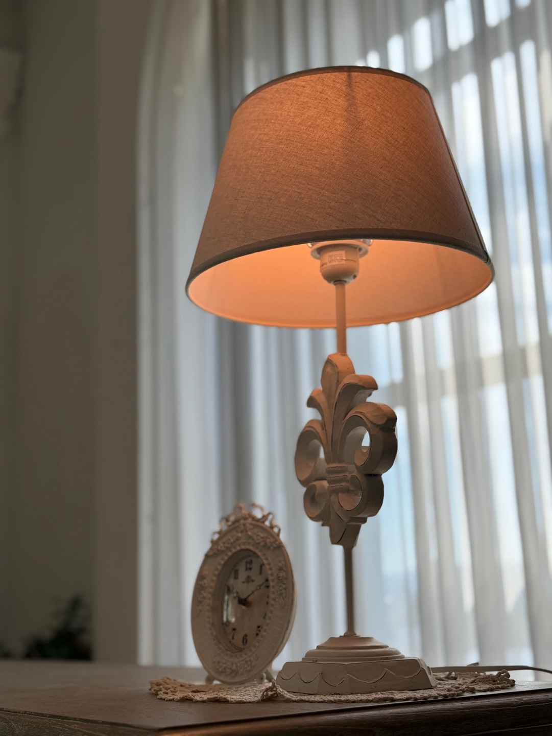 앤틱한 마감의 스탠드와 부드러운 빛을 내는 갓이