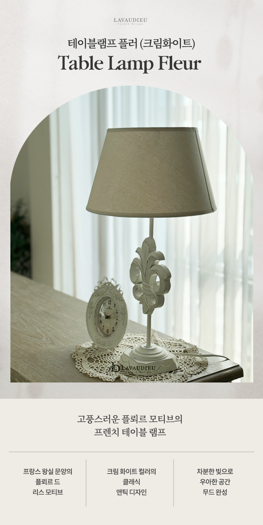 플뢰르 드 리스 모티브와 크림 화이트 컬러가 어우러져