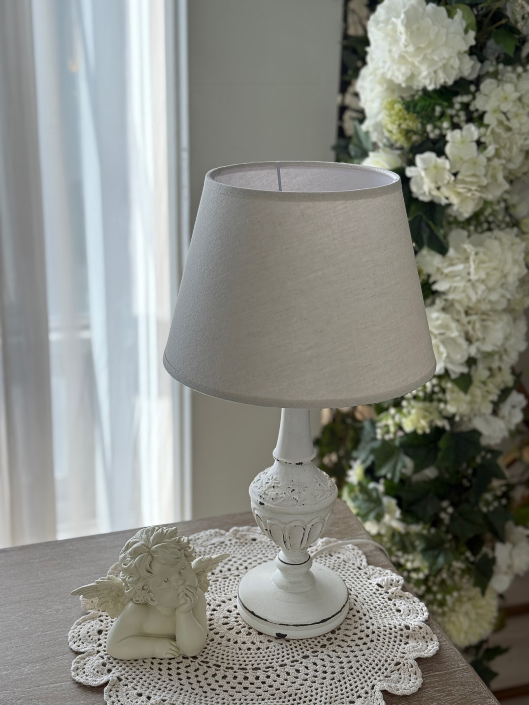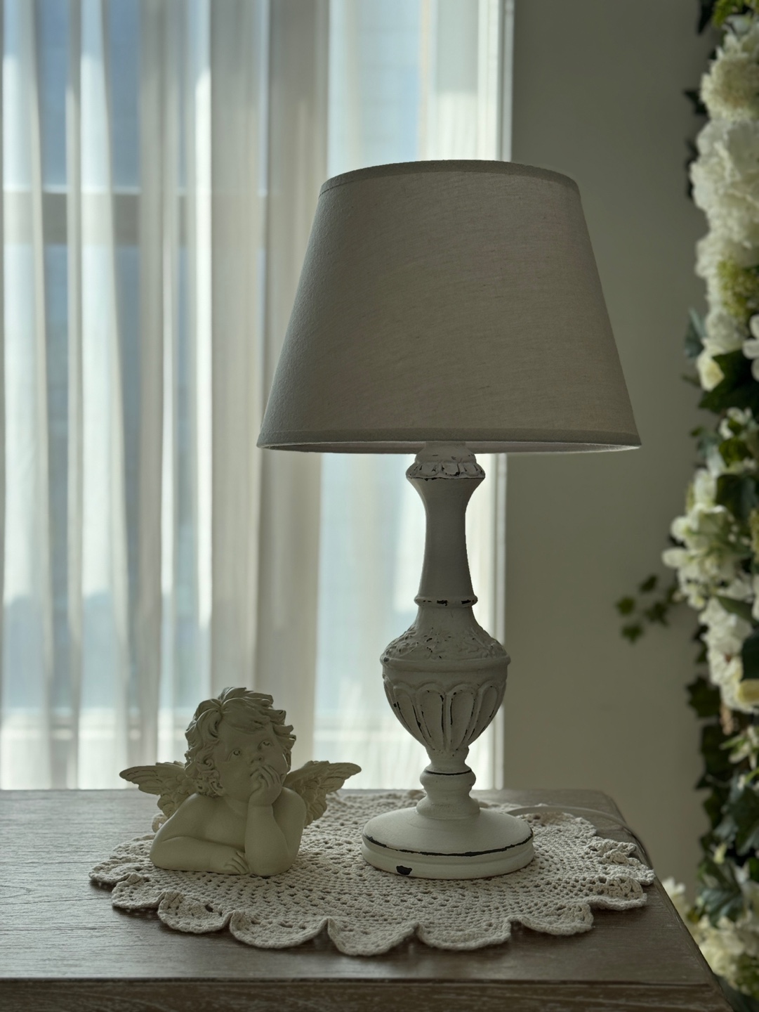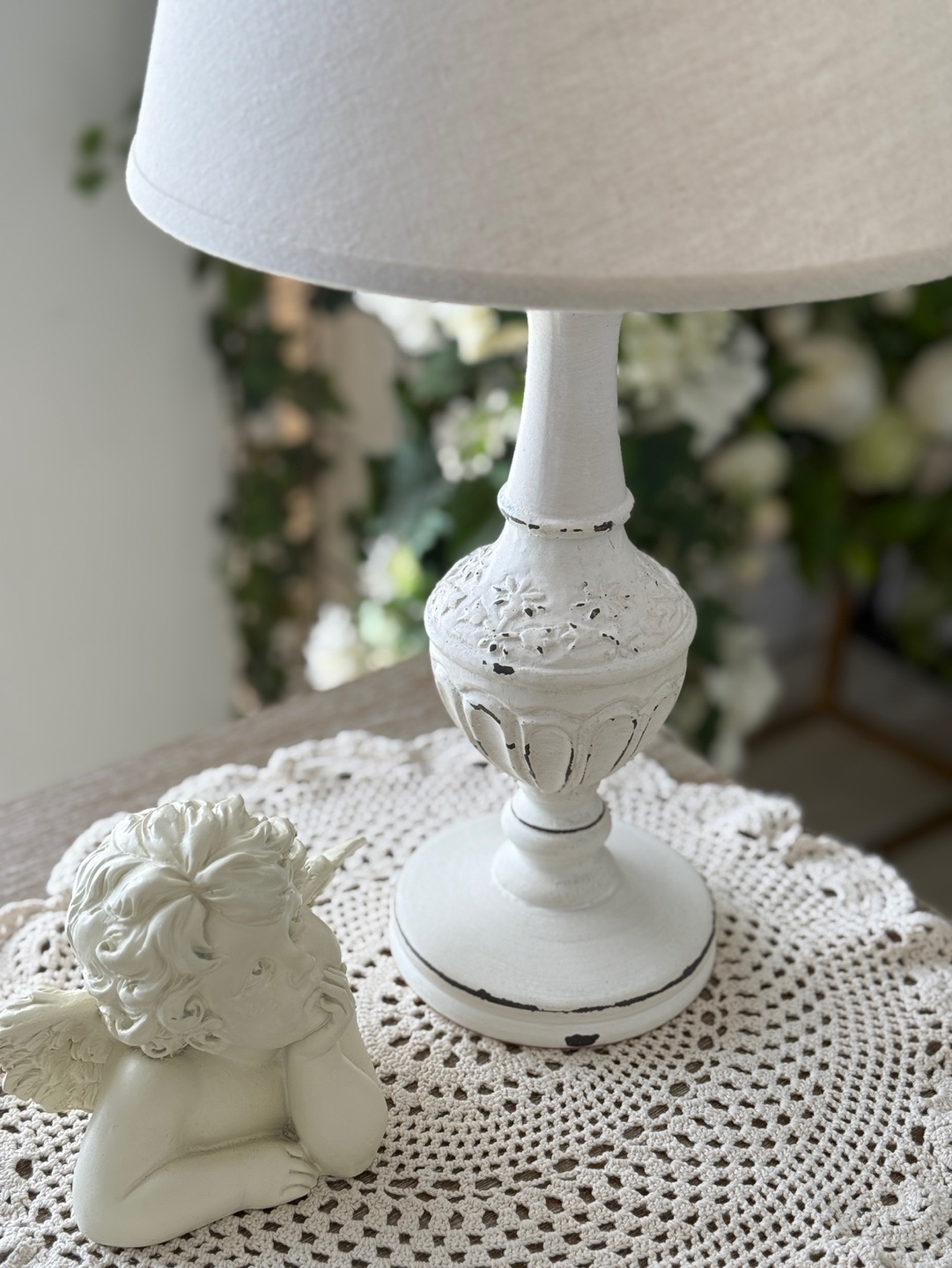 프렌치 로맨스를 담은 쉐비 화이트 테이블 램프