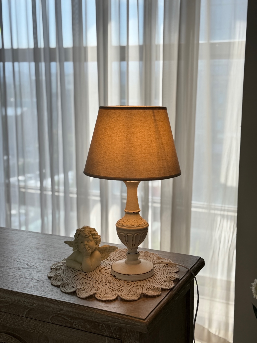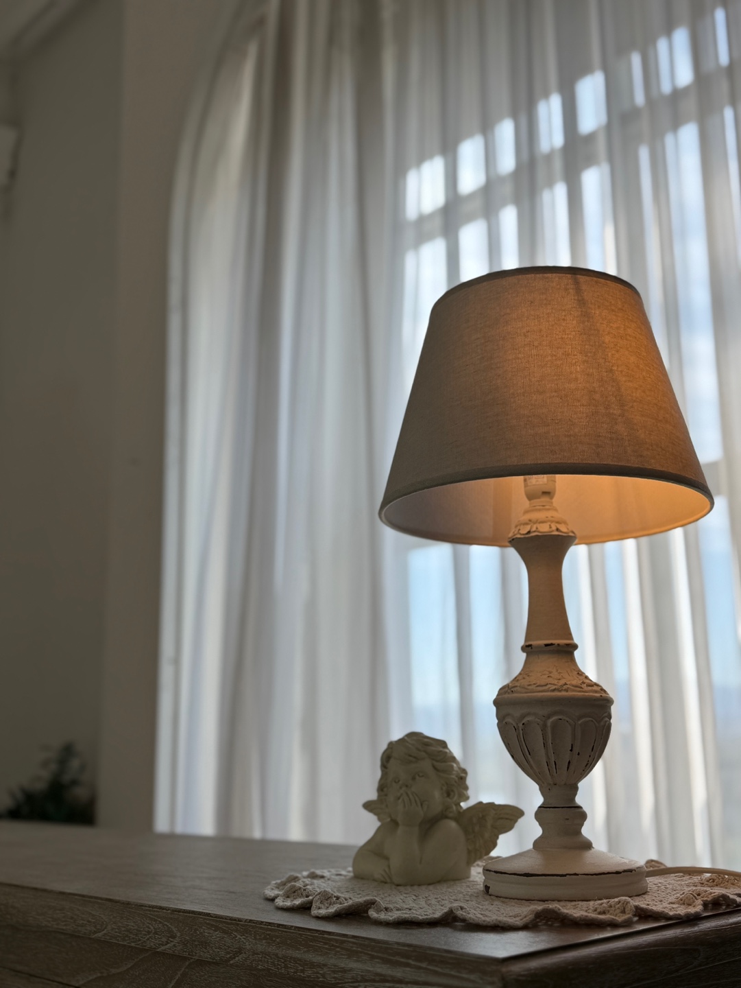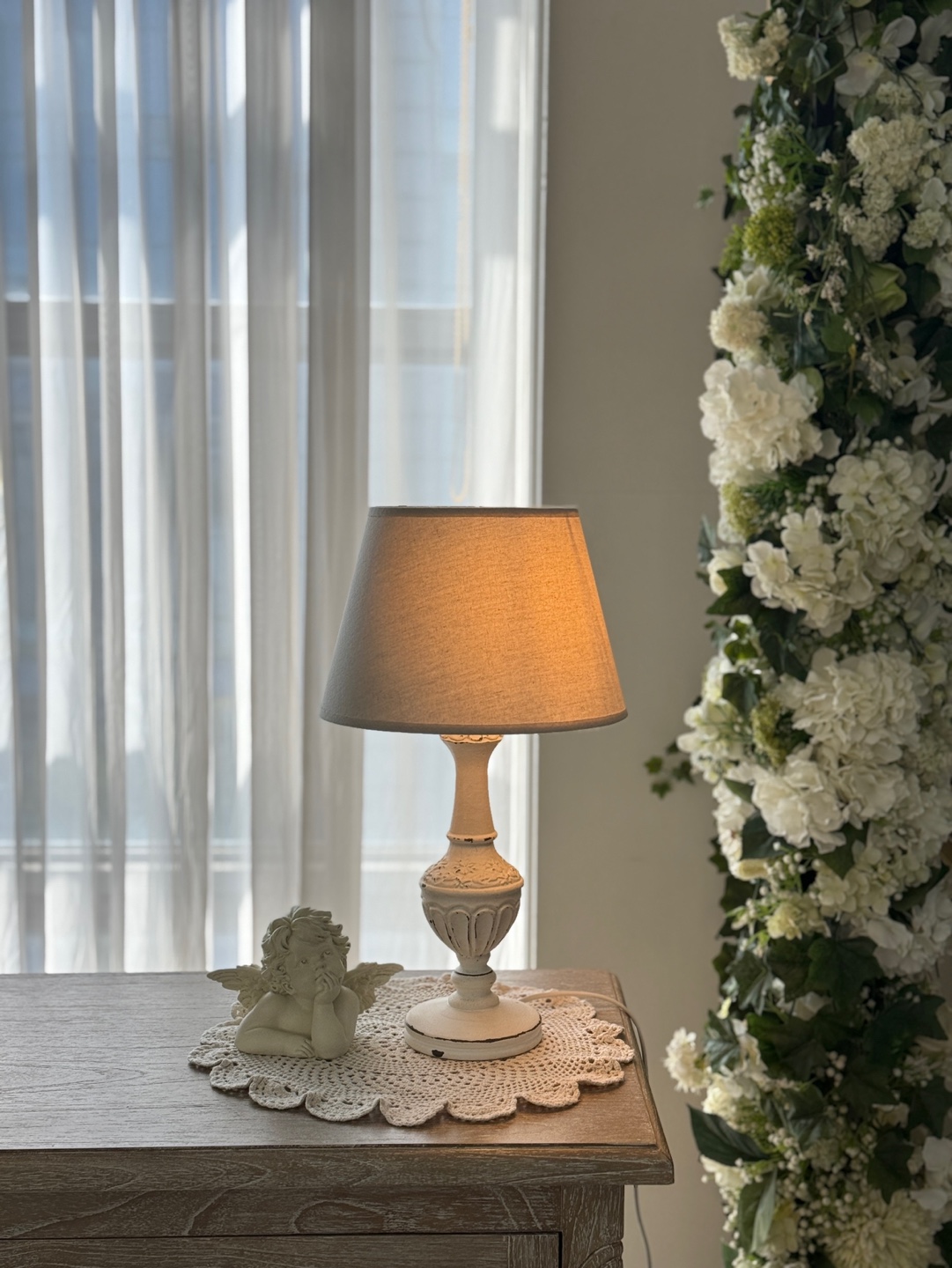 프렌치 로맨스를 담은 쉐비 화이트 테이블 램프