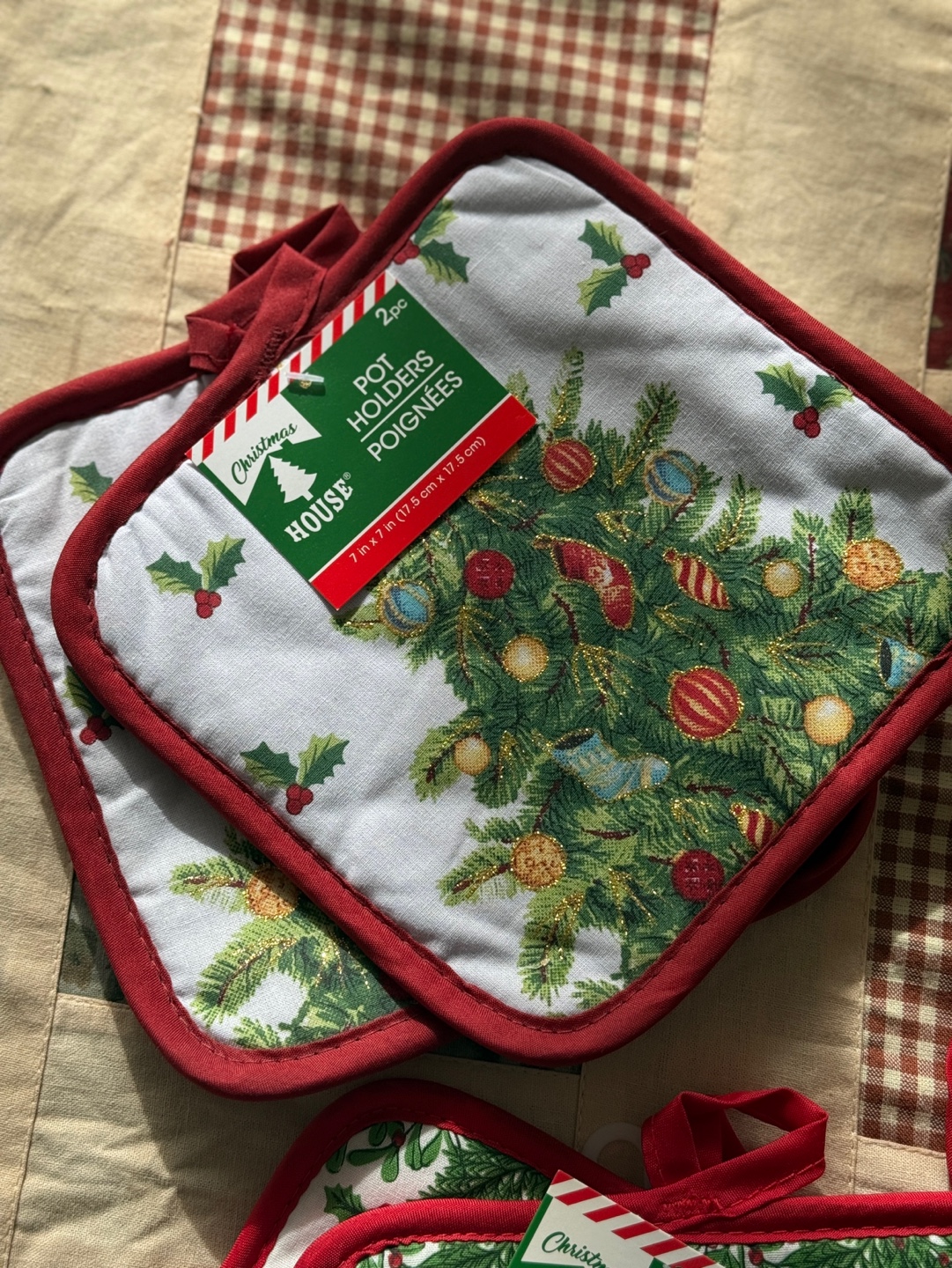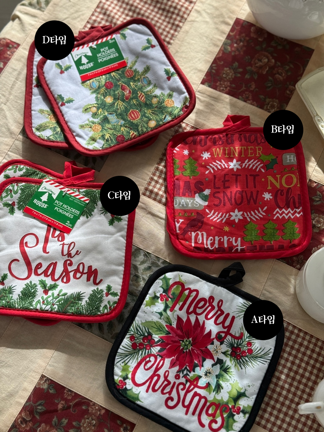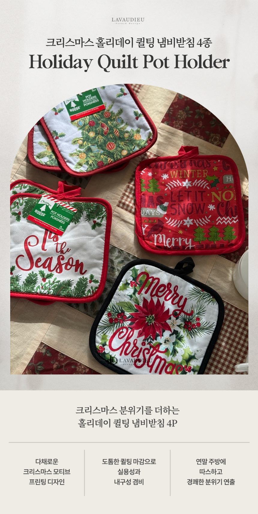 크리스마스 홀리데이 퀼팅 냄비받침 4P