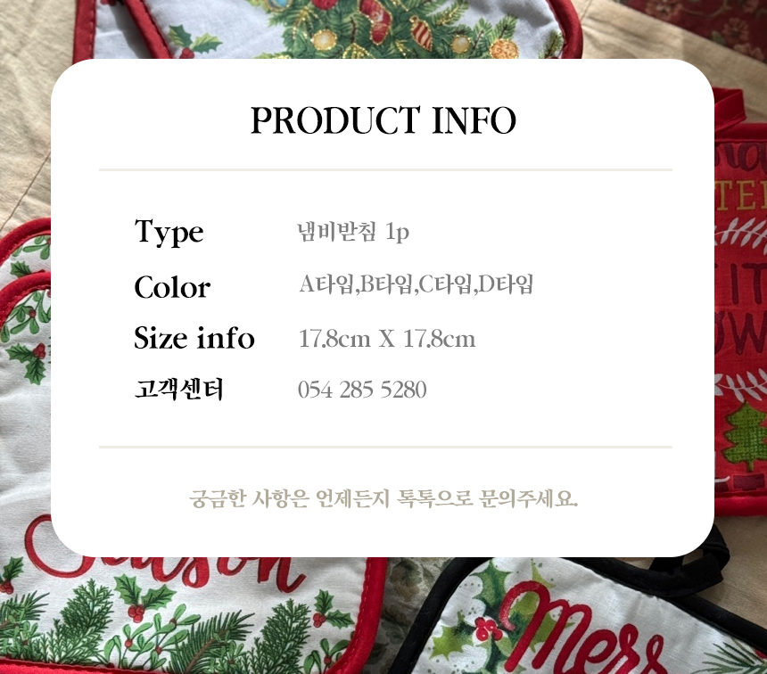 연말 홈 파티나 크리스마스 테이블 세팅에 포근하고 경쾌한 홀리데이 분위기를 더해줄 필수 주방 아이템입니다.