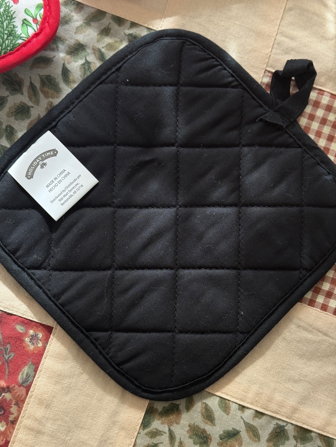 도톰하고 견고한 퀼팅 마감으로 뜨거운 냄비로부터 손과 테이블을 안전하게 보호해 주는 실용적인 아이템입니다.