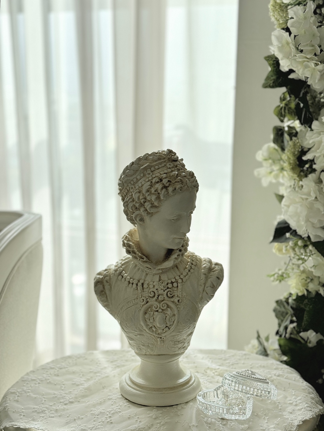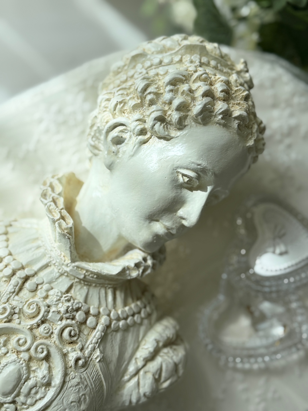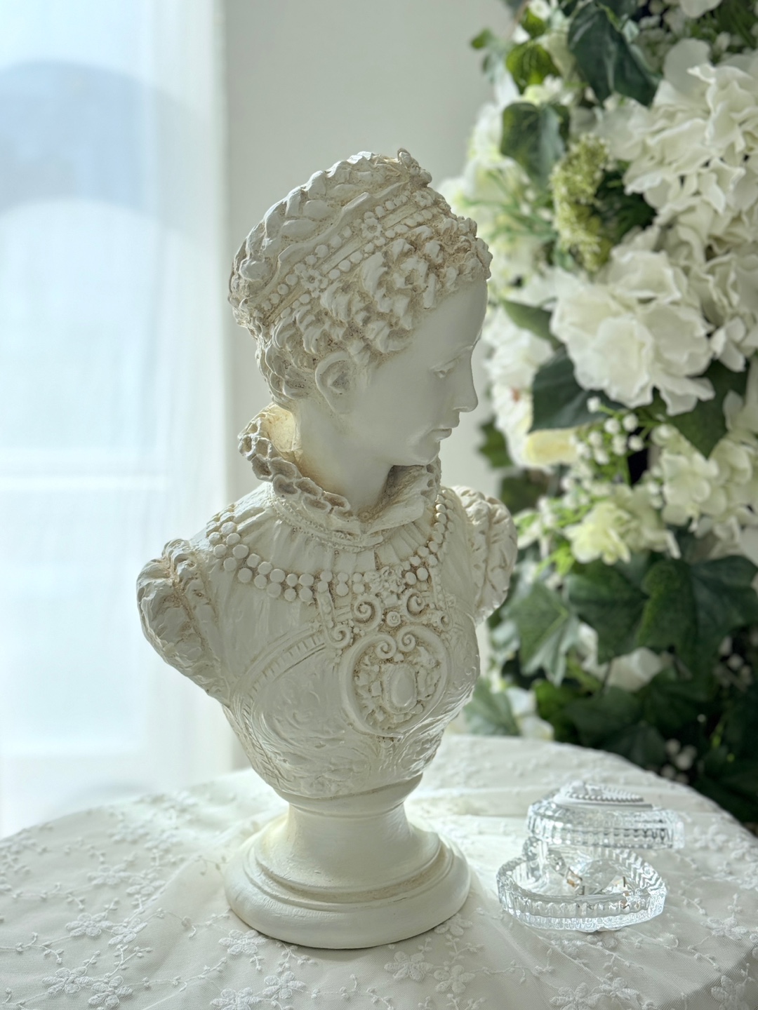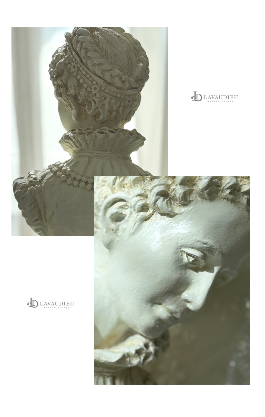 섬세한 장신구 디테일이 살아있는 클래식한 여성 흉상 오브제입니다