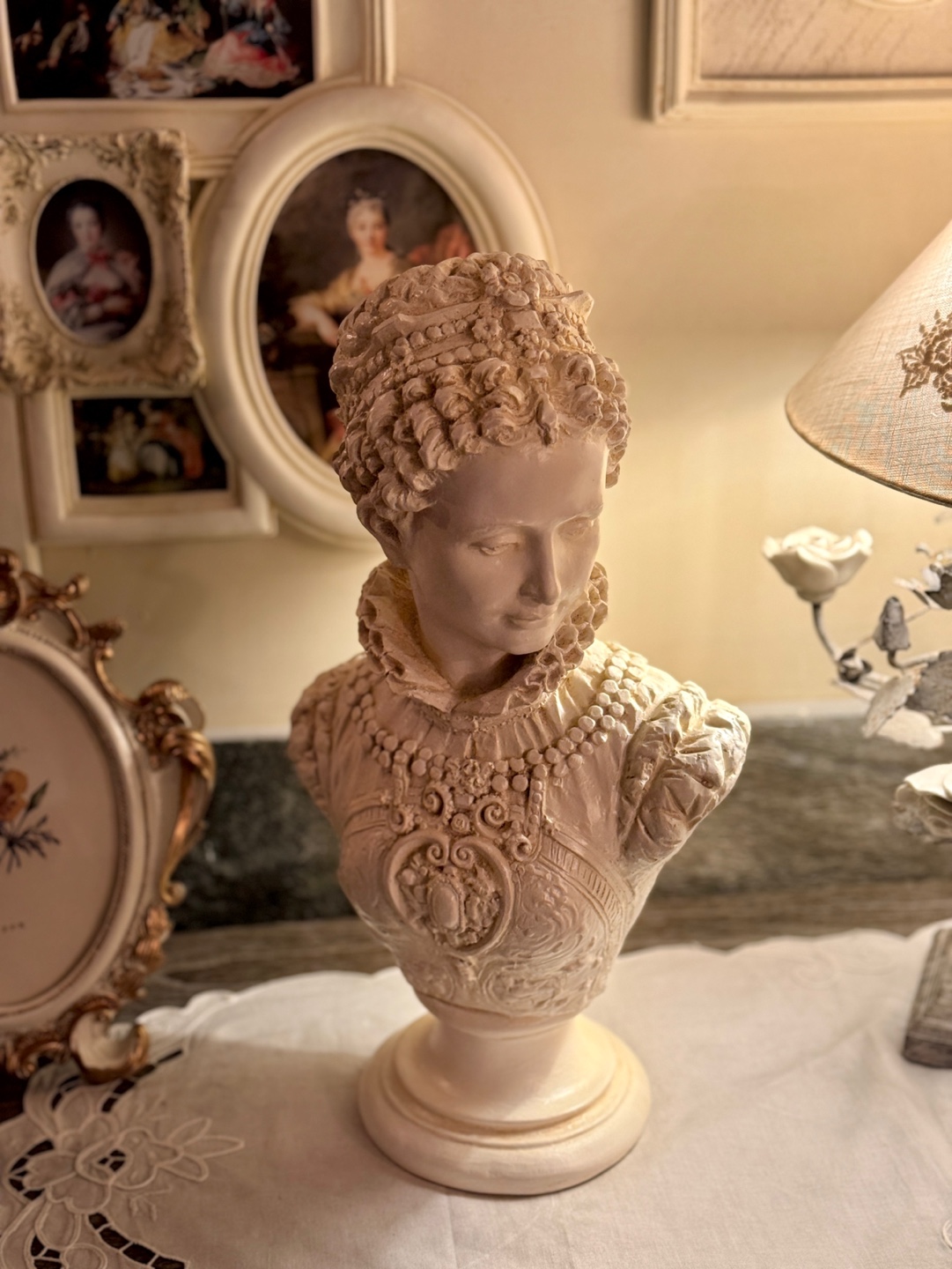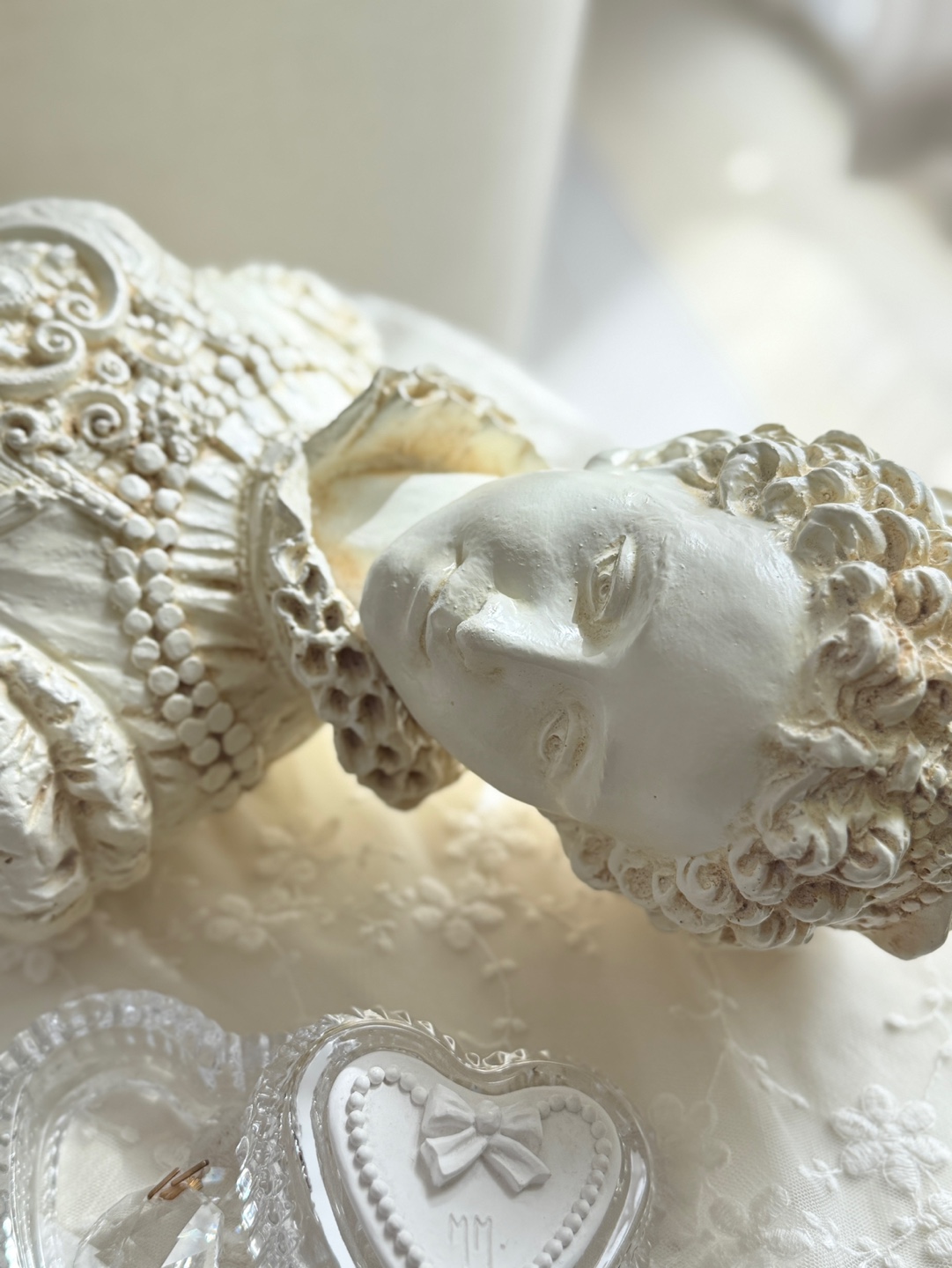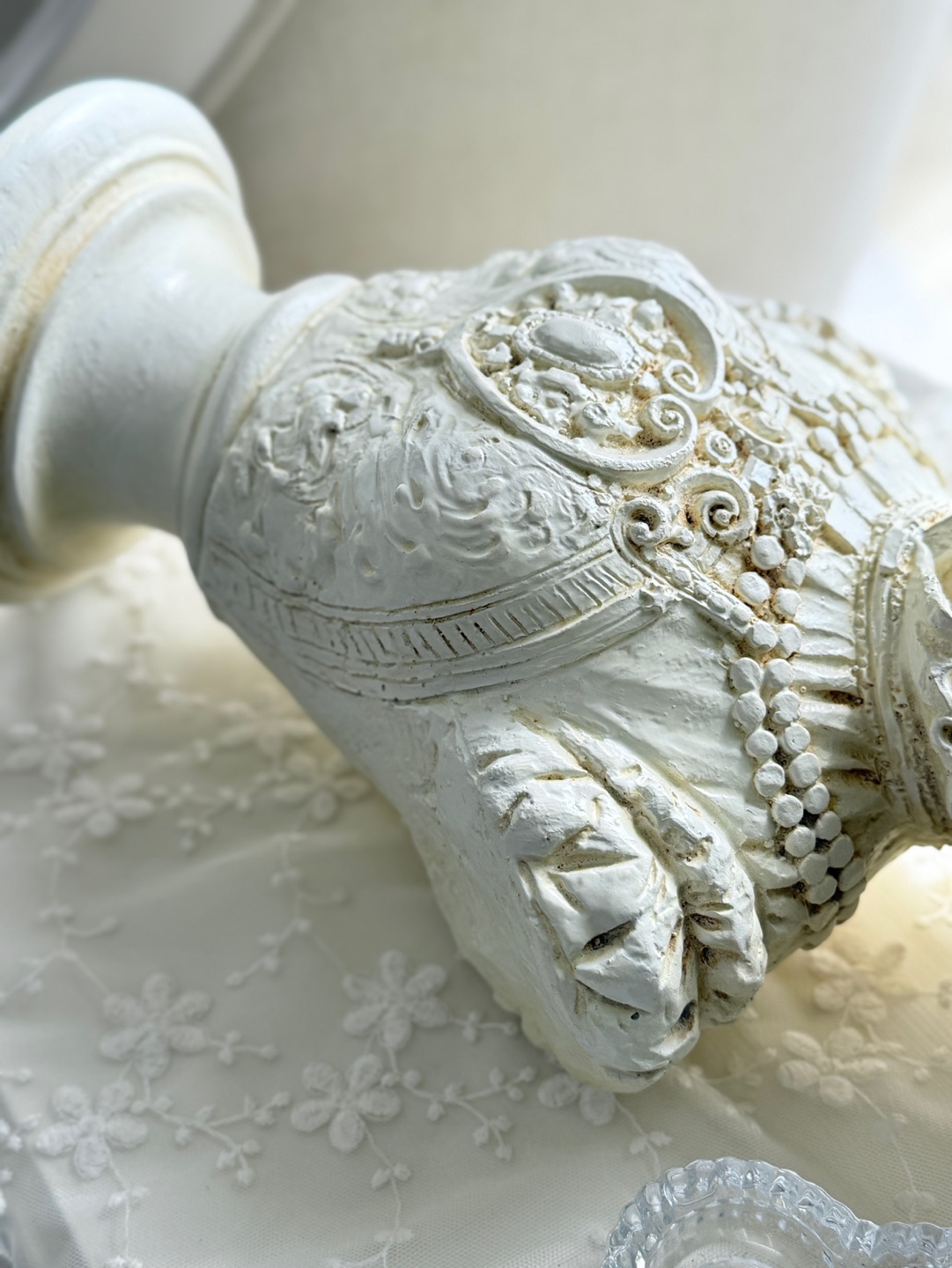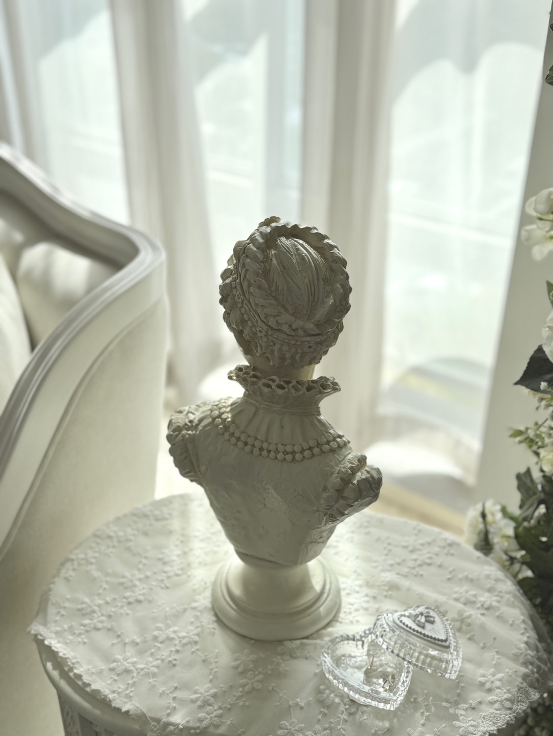 섬세한 장신구 디테일이 살아있는 클래식한 여성 흉상 오브제입니다