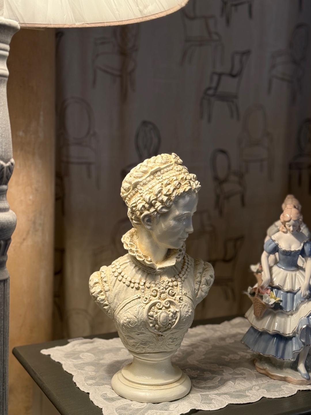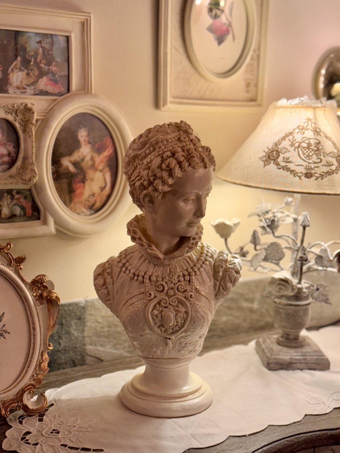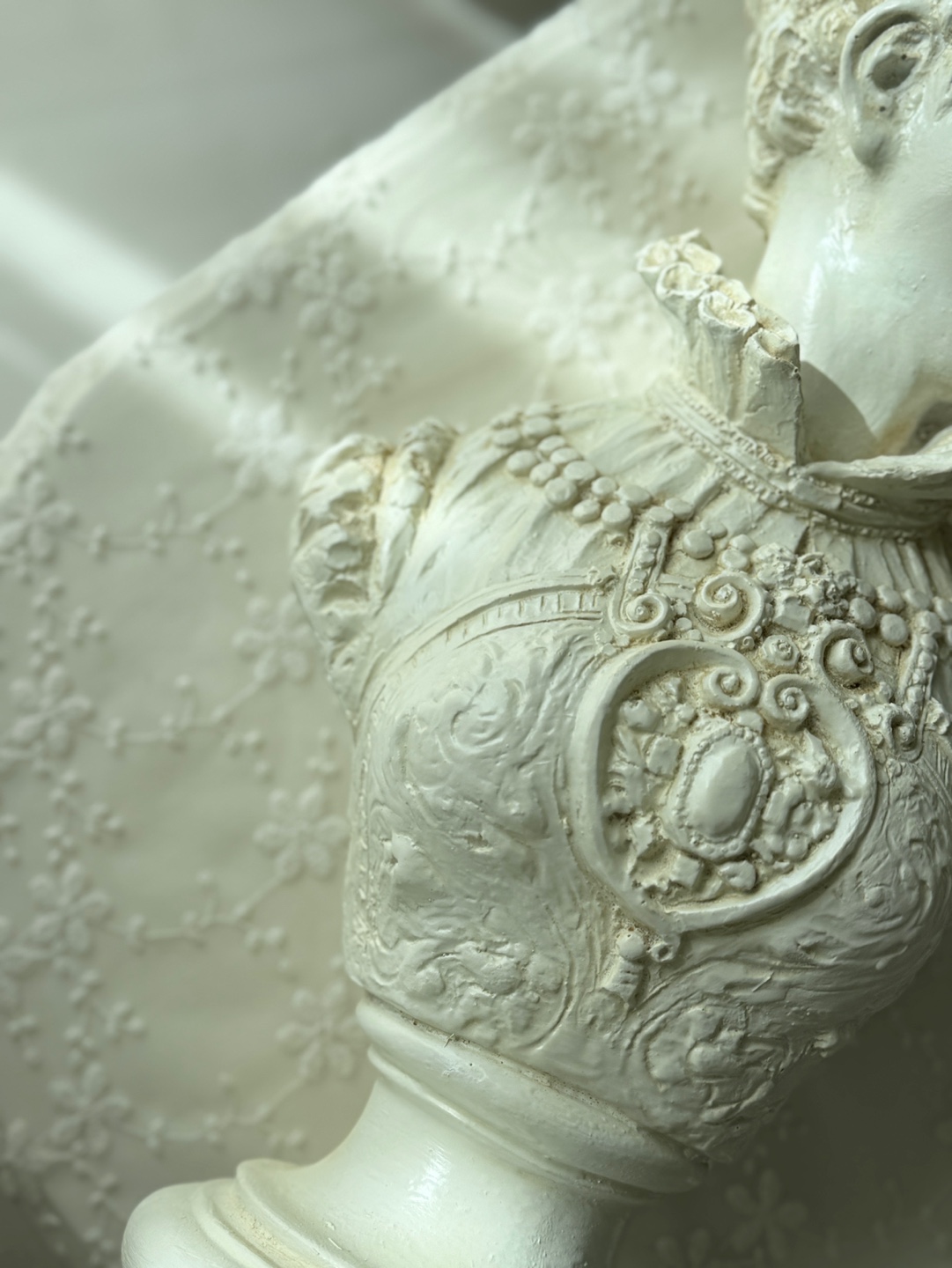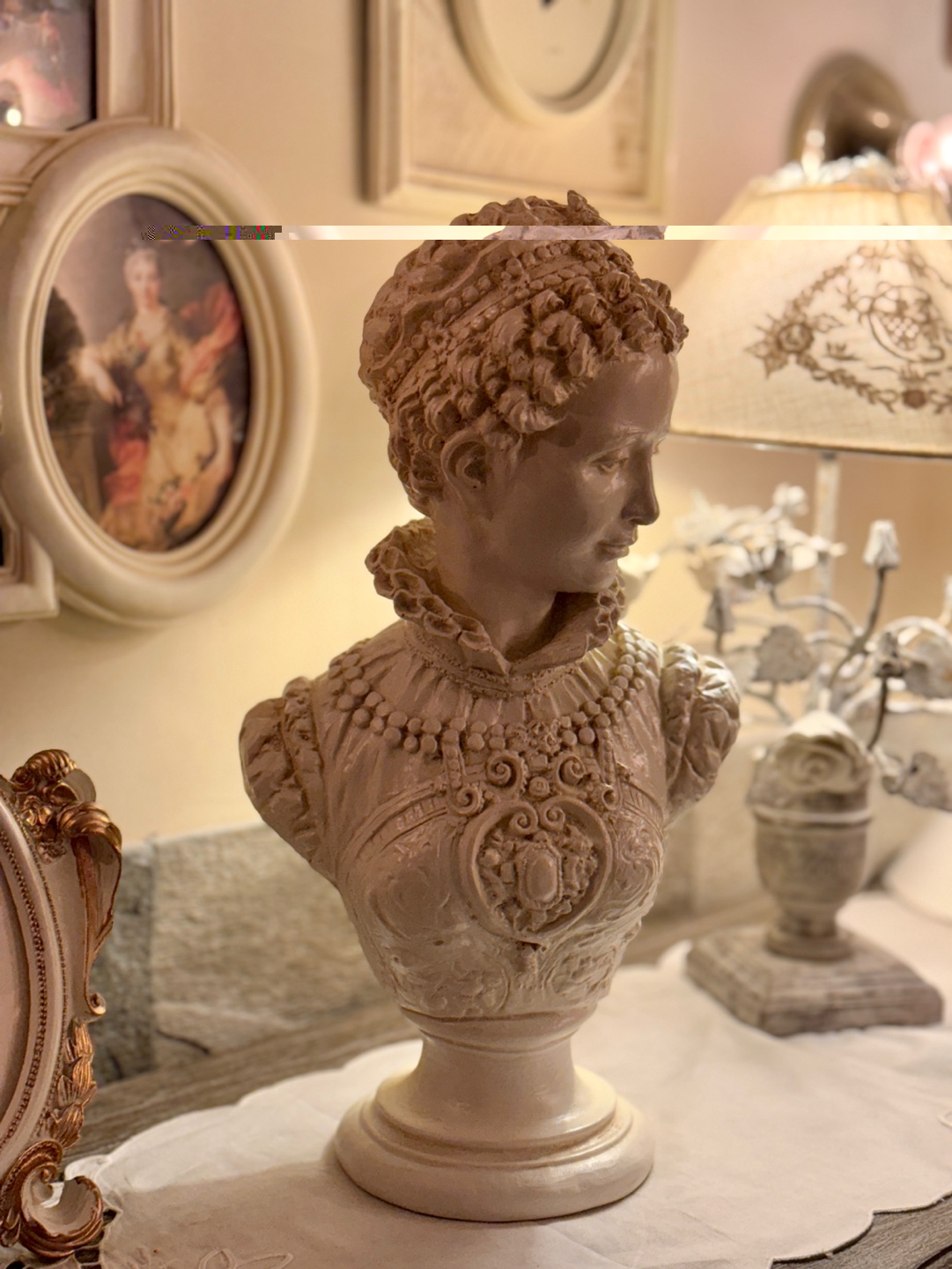 섬세한 장신구 디테일이 살아있는 클래식한 여성 흉상 오브제입니다