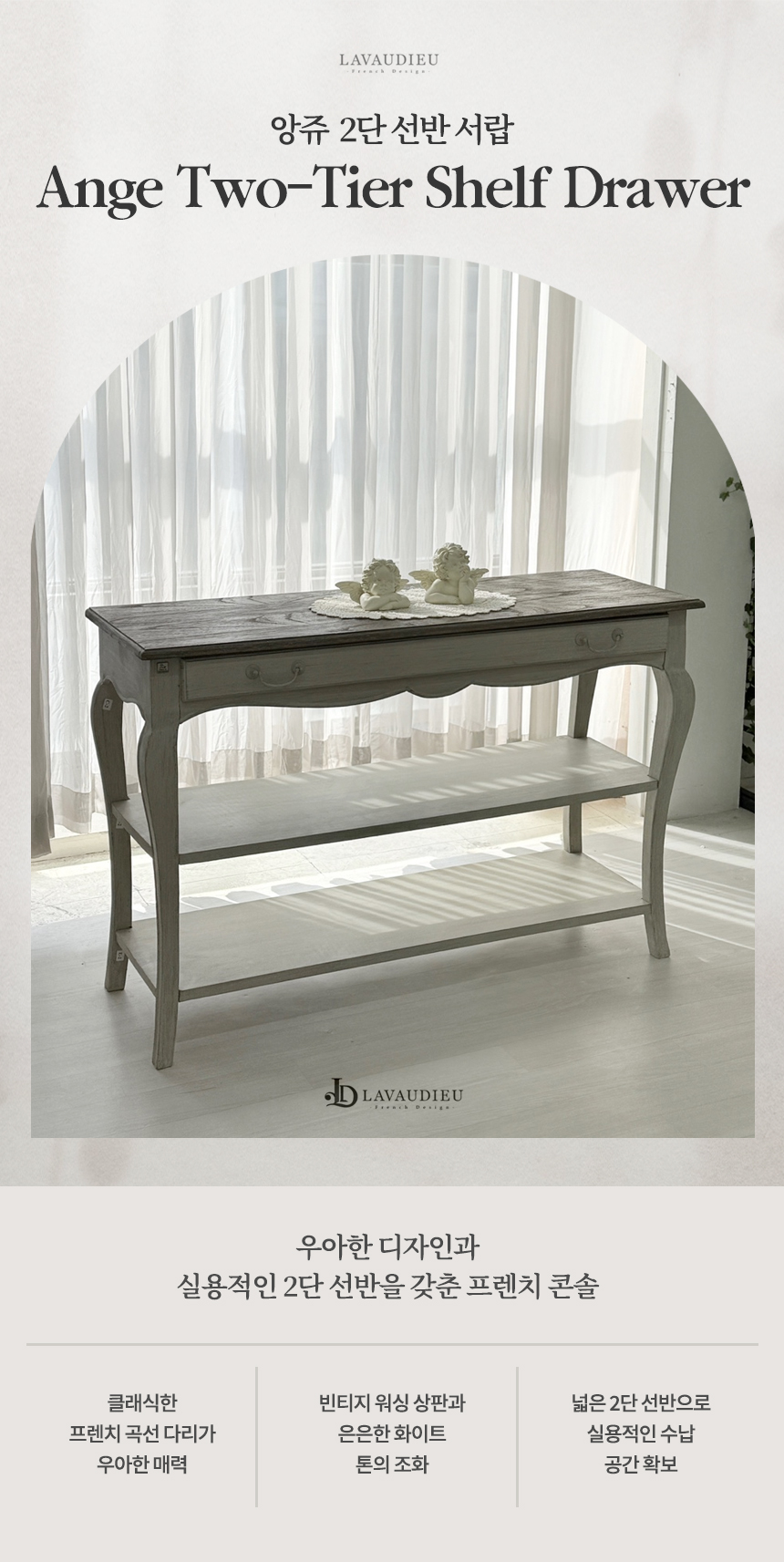 앙주 2단 선반 서랍 콘솔