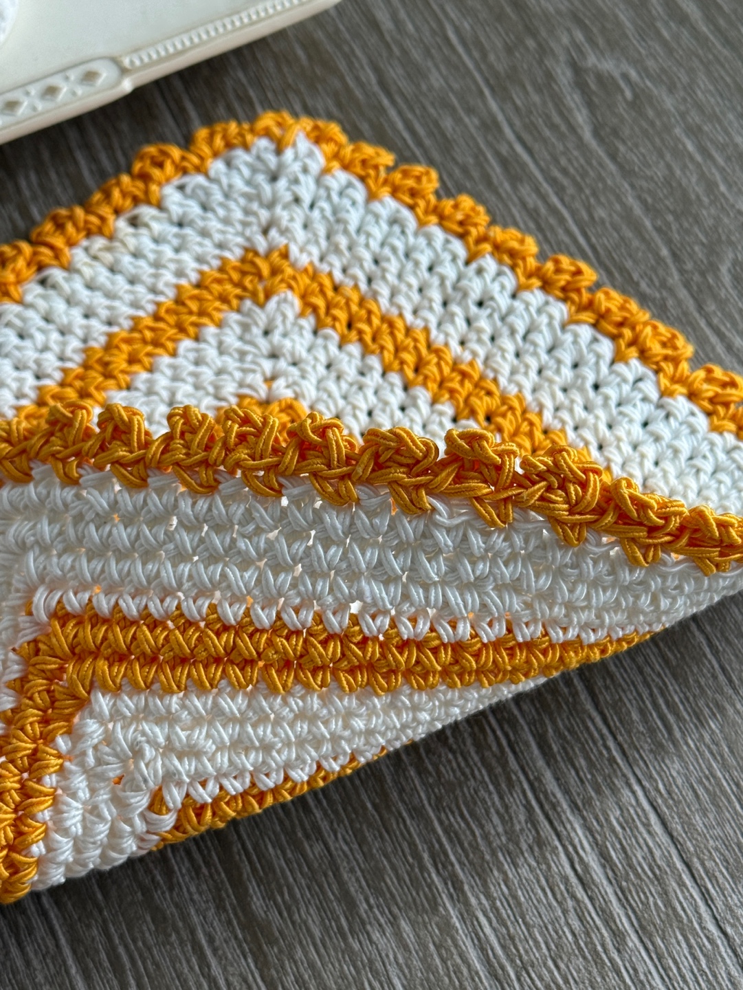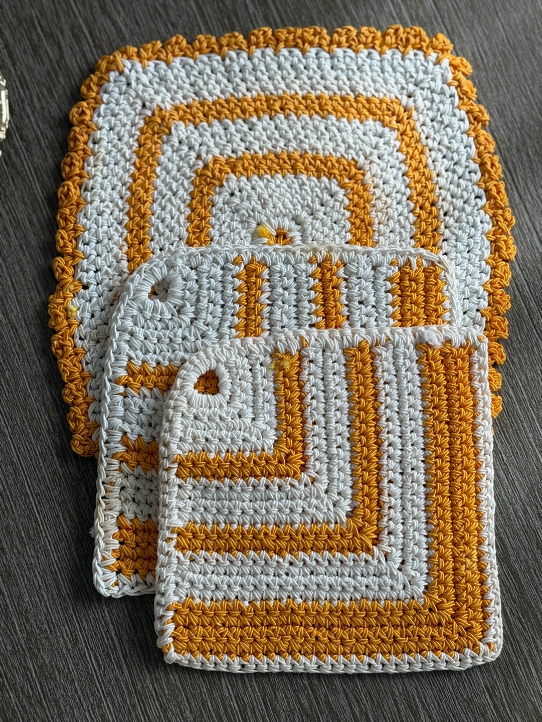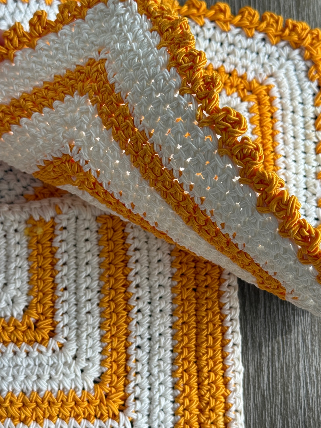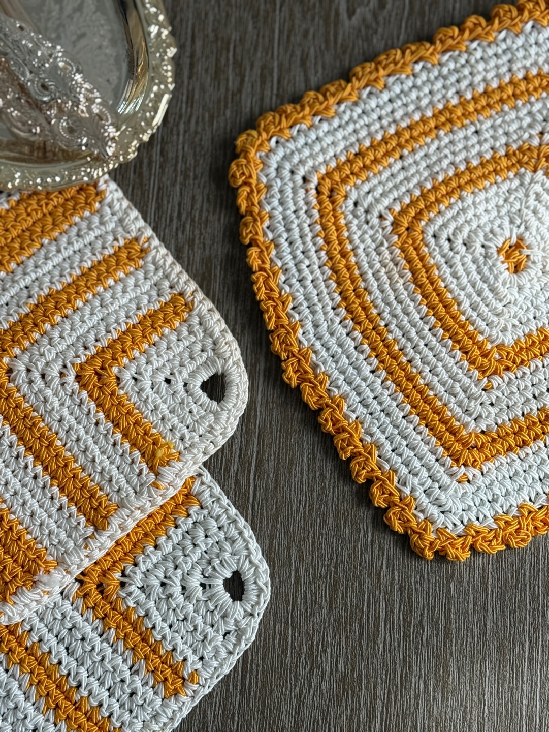 정성껏 한 코 한 코 손으로 엮어 만든 핸드메이드 크로셰 매트입니다.