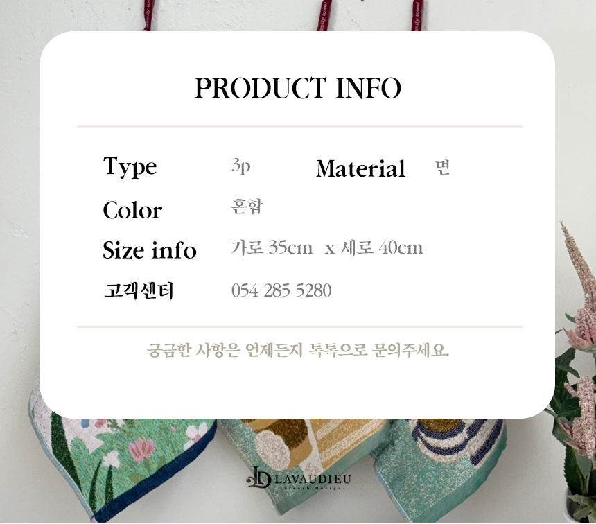 두툼하고 보송보송한 면 소재는 물기를 빠르고 부드럽게 흡수하며, 핸드 타월이나 테이블 매트 등 다양한 용도로 활용하기 좋습니다.
