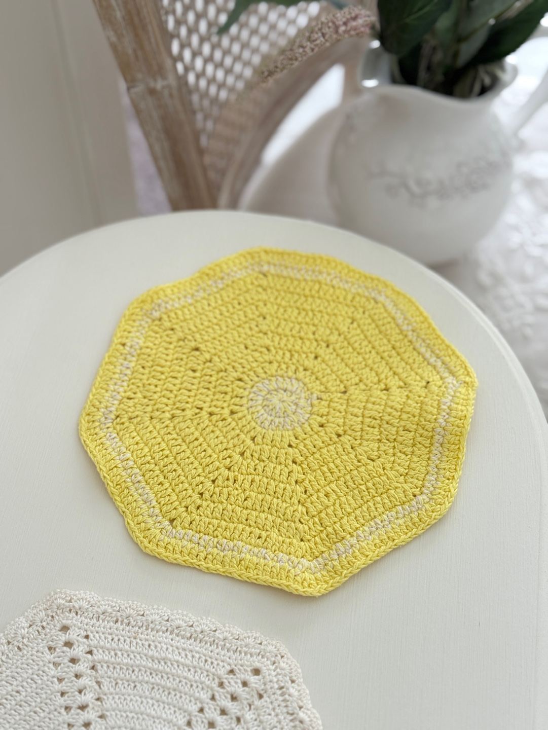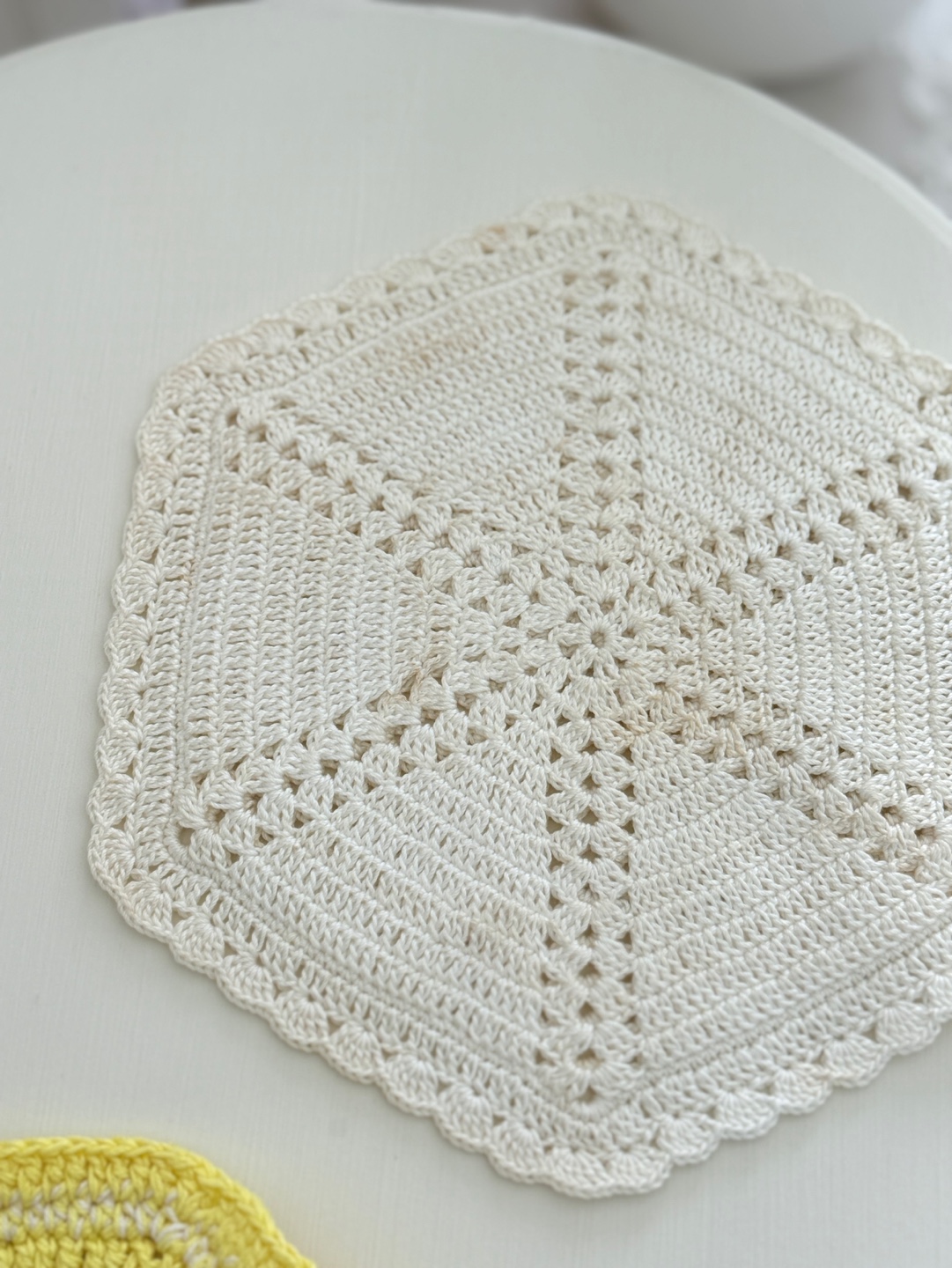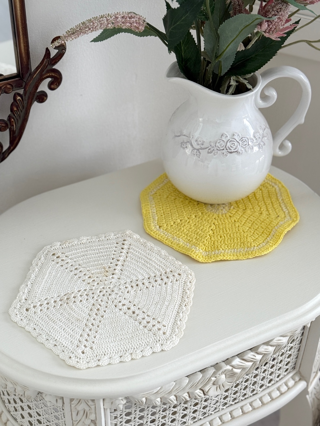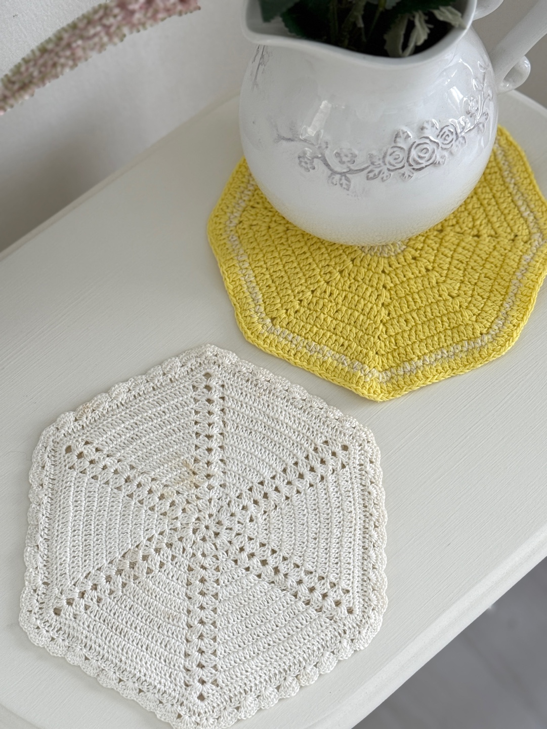 햇살처럼 화사한 컬러 조합의 헥사곤 뜨개 코스터