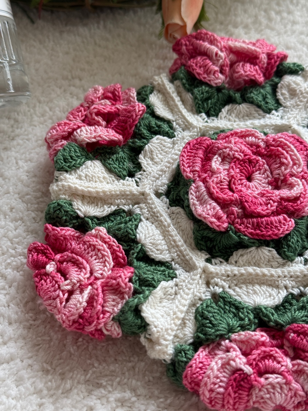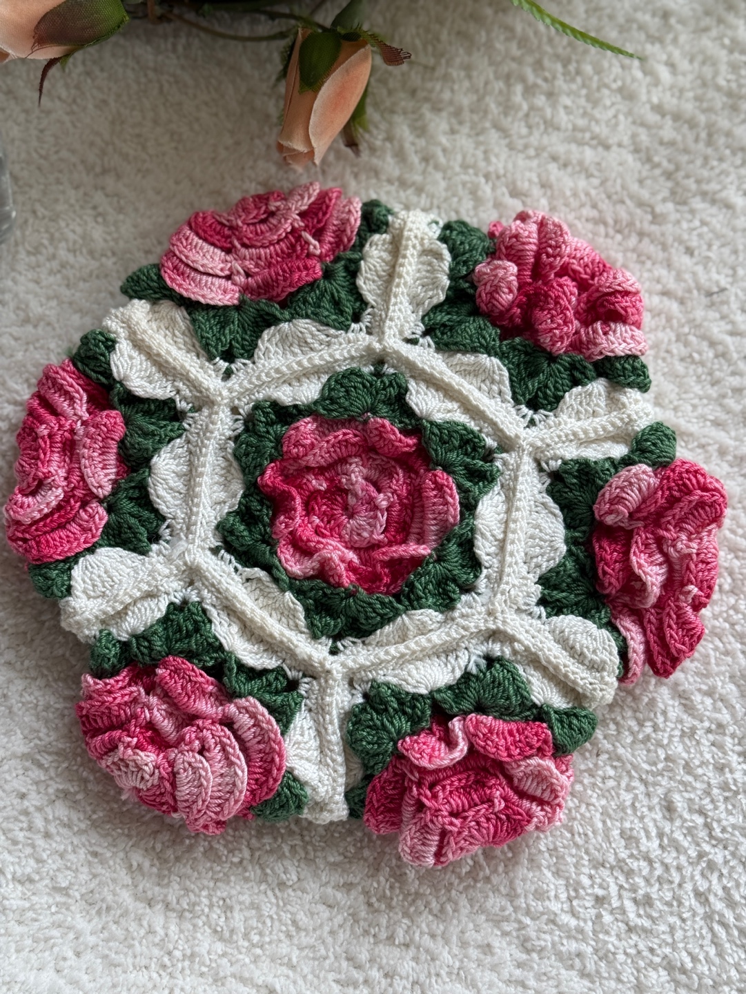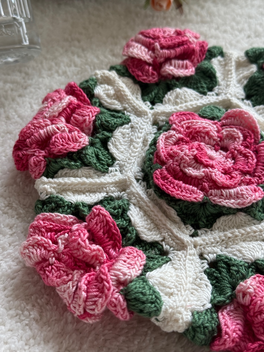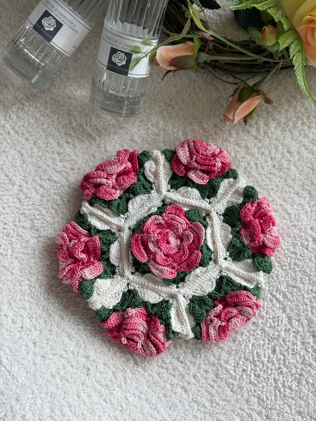 입체적인 장미 꽃다발 모양의 핸드메이드 뜨개 코스터