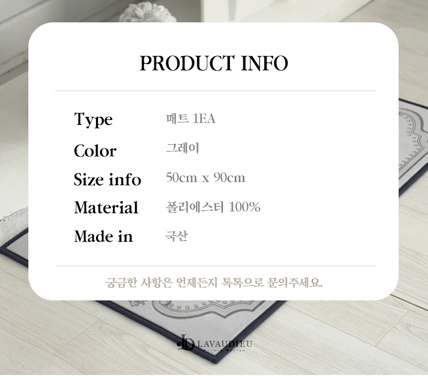 현관이나 주방 등에 깔아두어 모던과 클래식이 조화된 프렌치 인테리어를 완성해보세요.