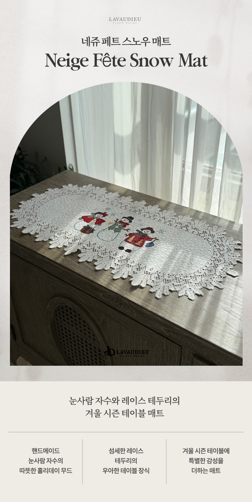 귀여운 눈사람 자수와 섬세한 레이스 디테일이