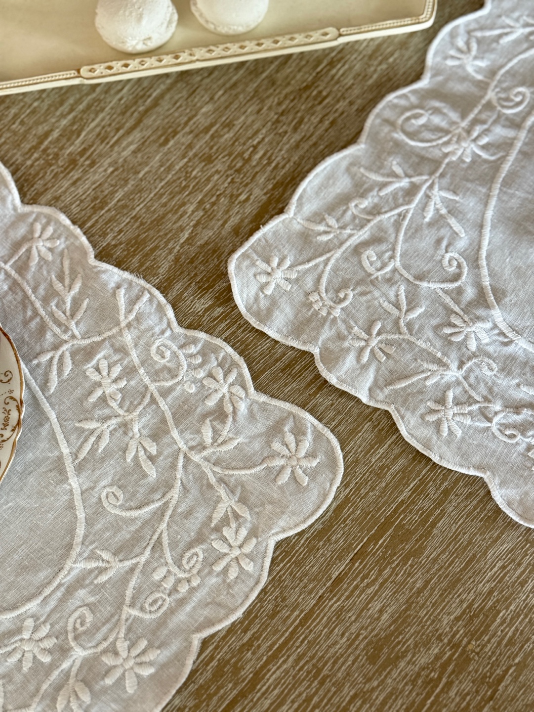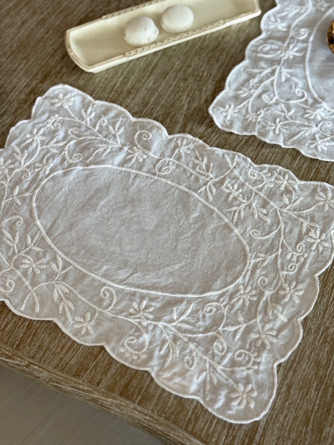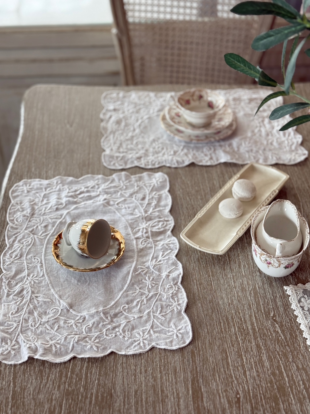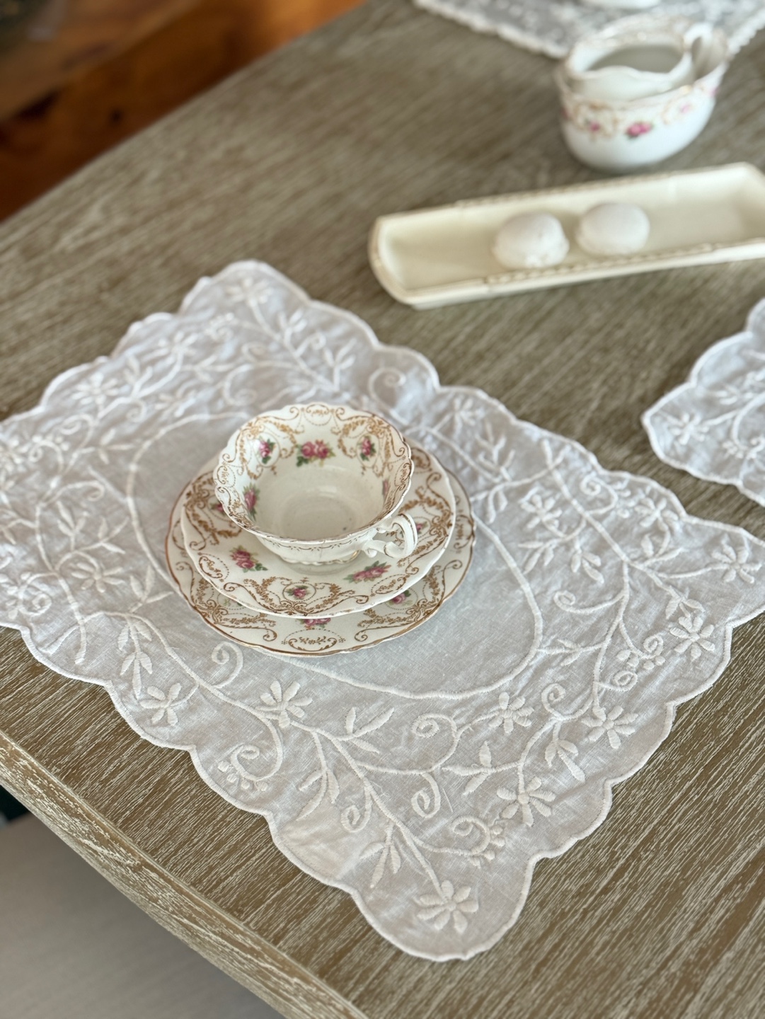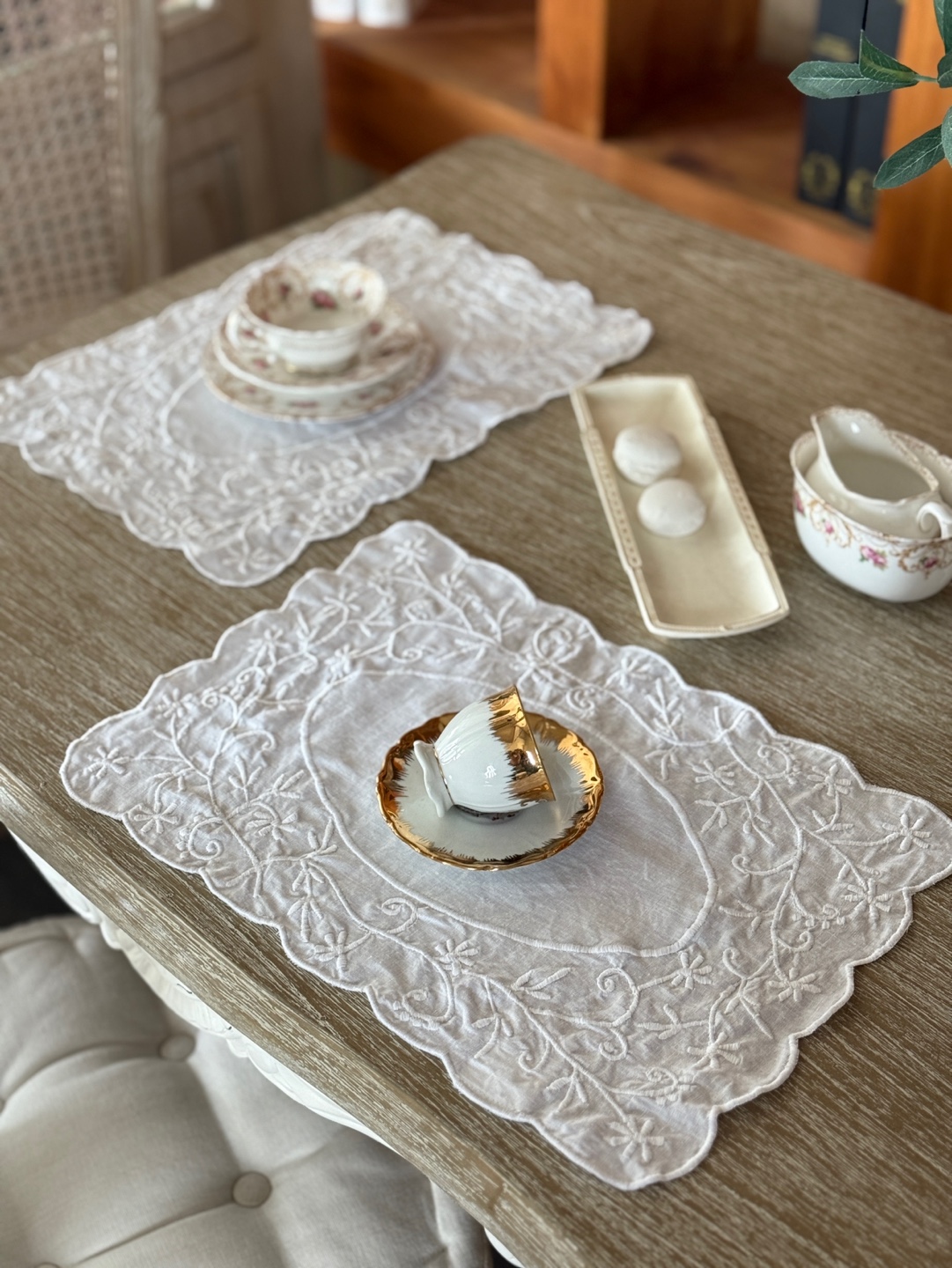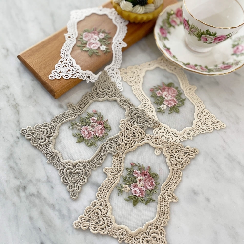 깨끗한 화이트 코튼 소재, 찻잔이나 화병 받침으로 고급스러운 데코레이션