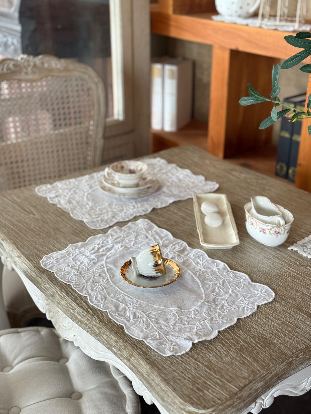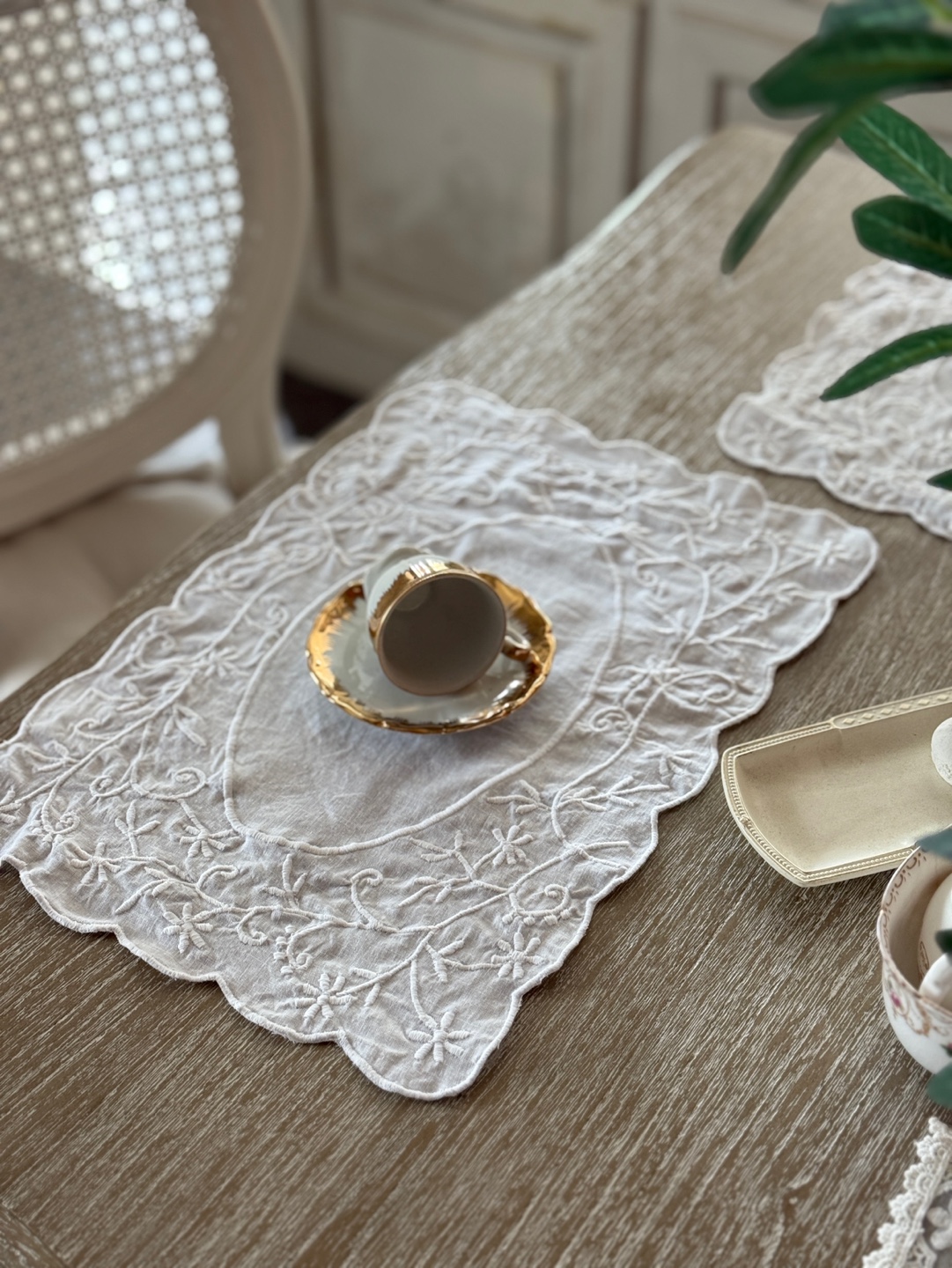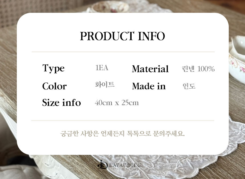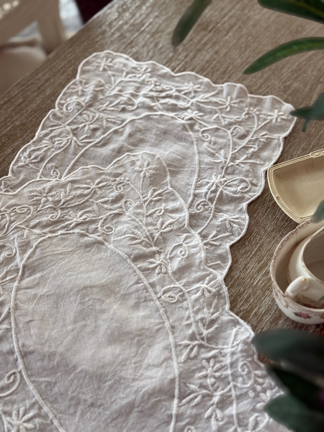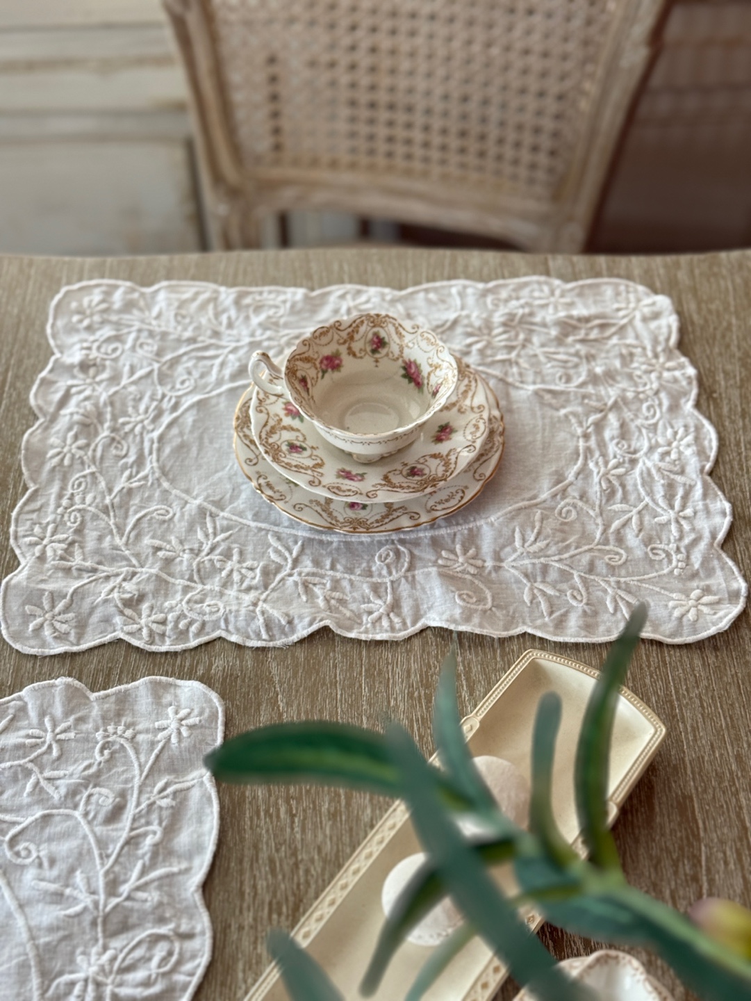 깨끗한 화이트 코튼 소재, 찻잔이나 화병 받침으로 고급스러운 데코레이션
