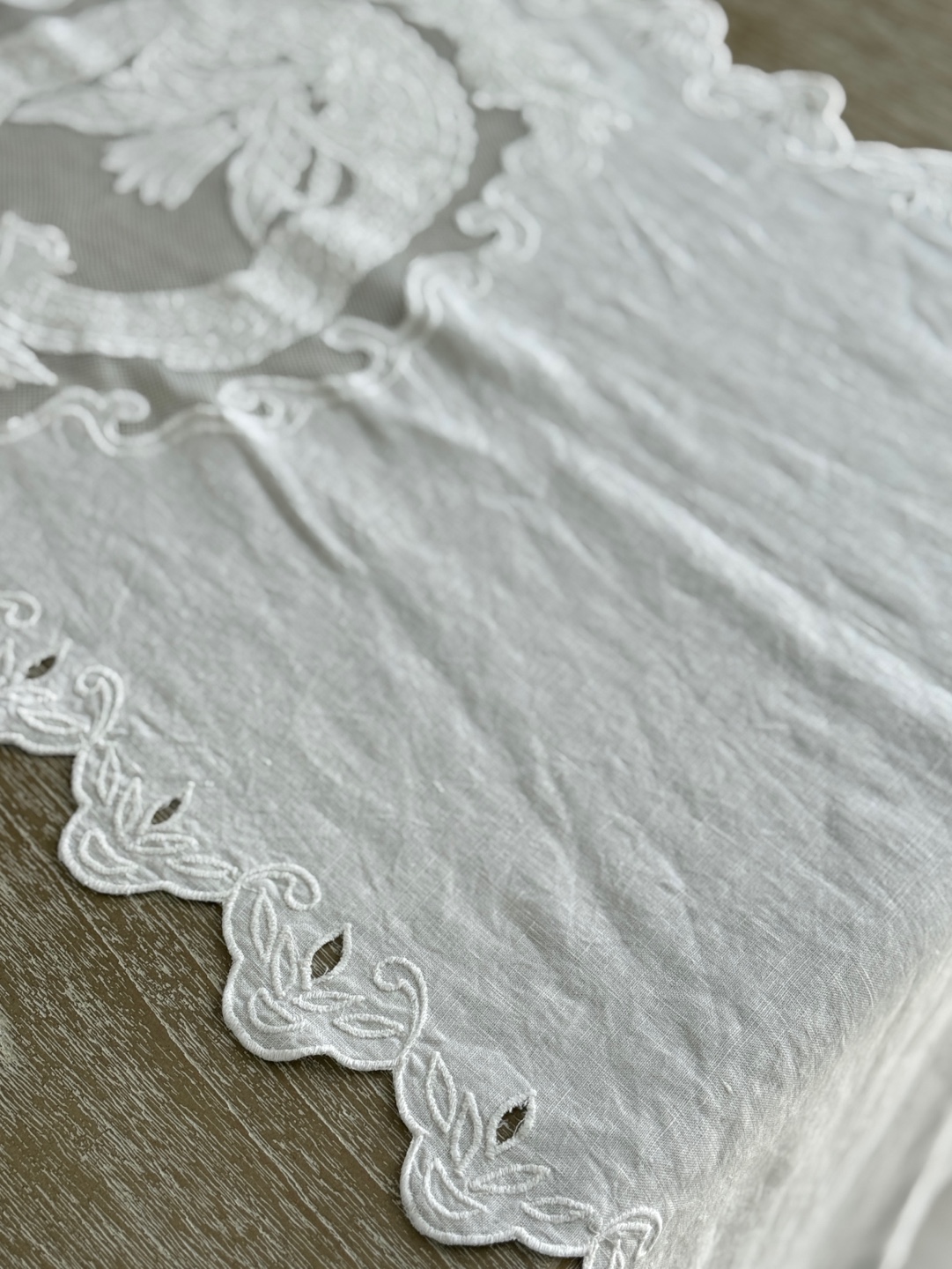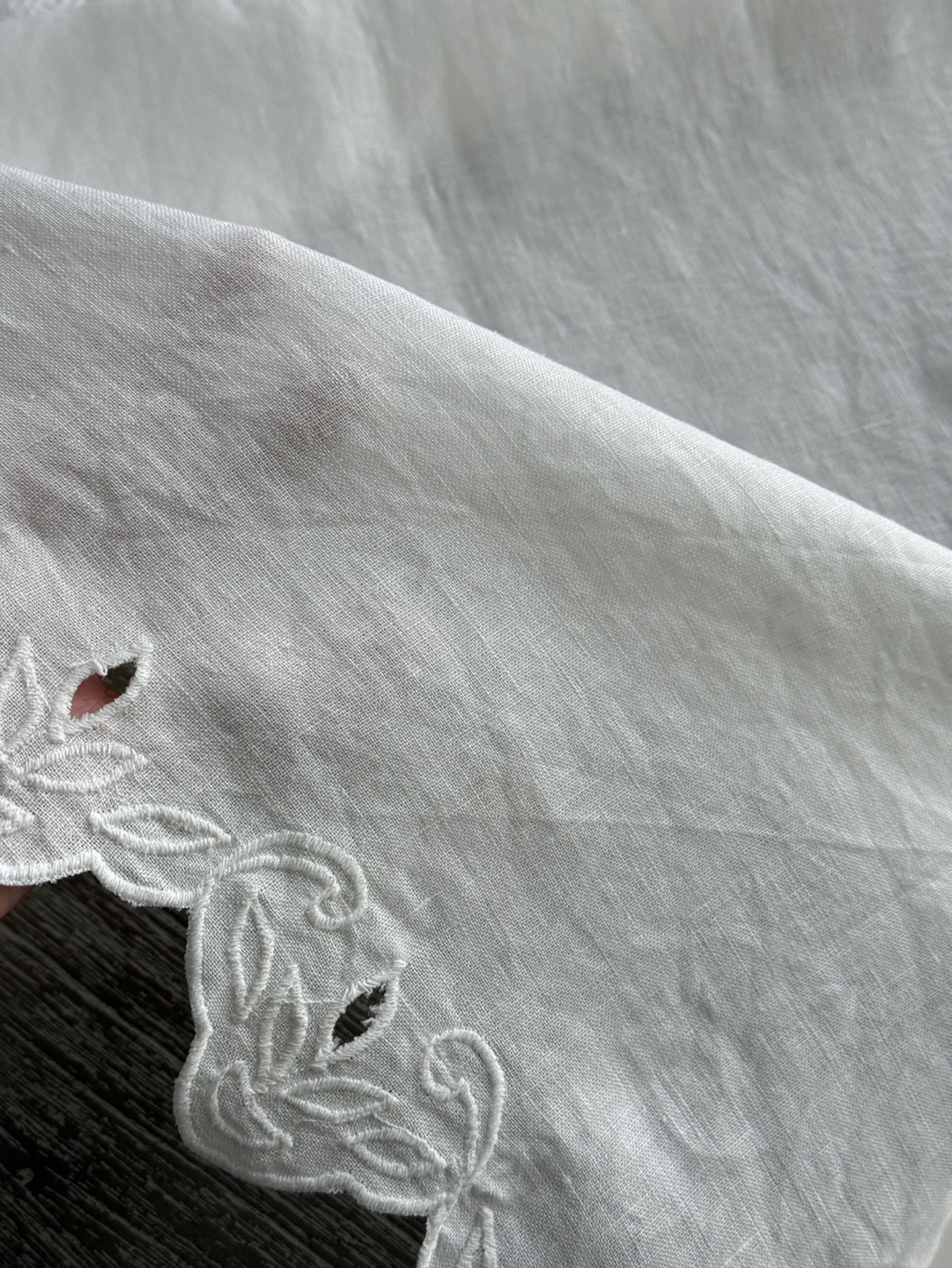 섬세한 자수 디테일과 내추럴한 화이트 색상이