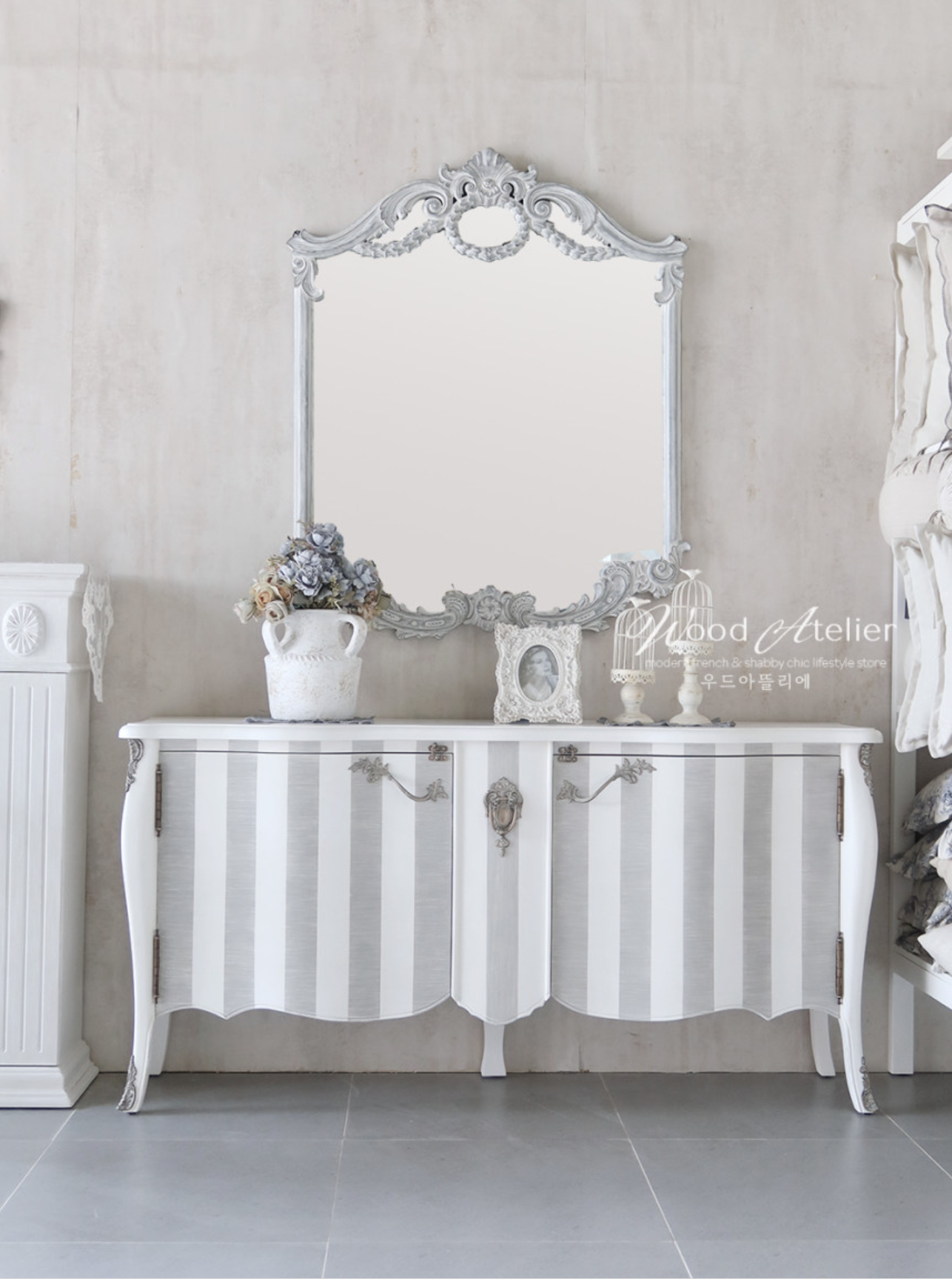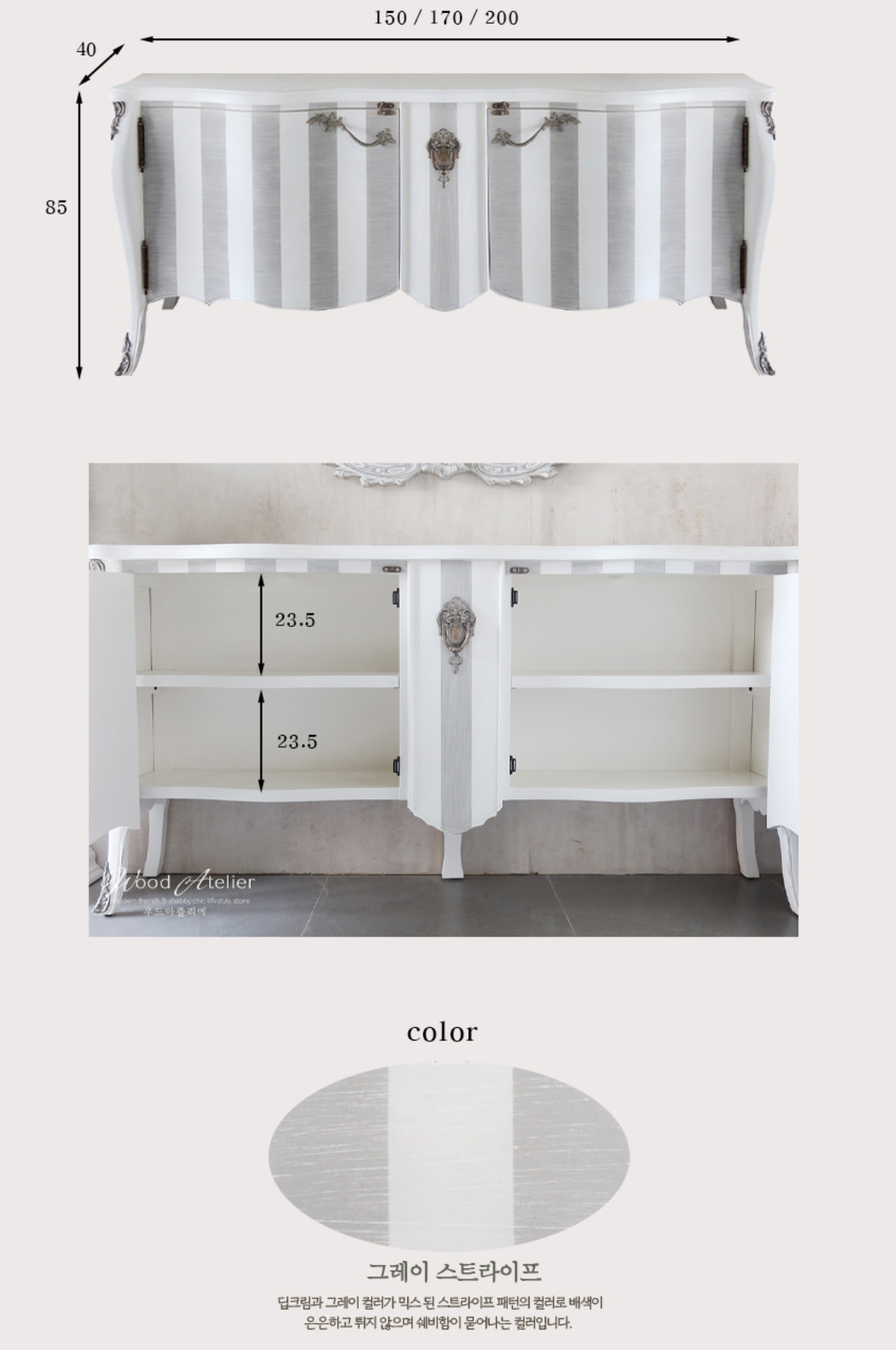 - HOME > 가구 > 거실장,와이드체스트 > 벨라 체스트 3가지 사이즈(가로 150/170/200) color 그레이 스트라이프 콘솔 장식장 TV스탠드 다이 쉐비시크 거실장